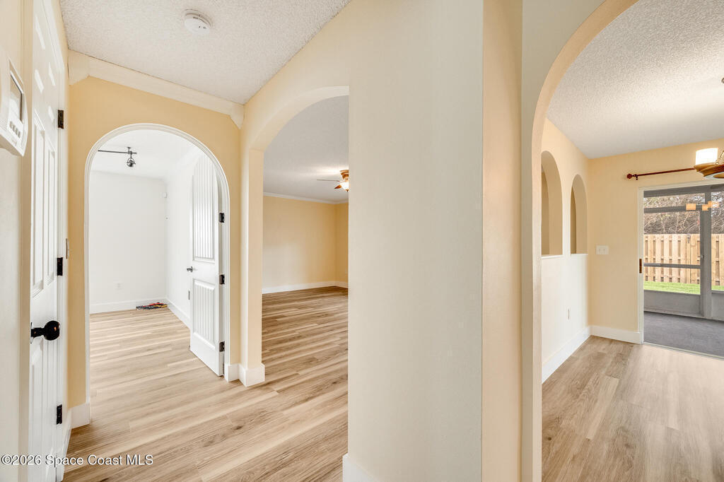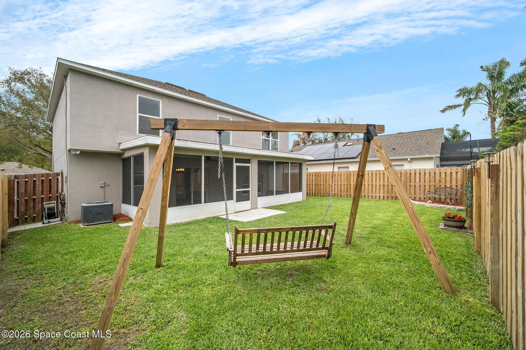 Beautifully maintained 4-bedroom, 2.5-bath two-story home located in one of NE Palm Bay's desirable gated communities, surrounded by natural preserve & just minutes from the scenic trails of Turkey Creek Sanctuary. New flooring throughout the entire home, spacious layout provides multiple living areas, offering flexibility for family living, entertaining, or working from home. Relax on the screened-in patio overlooking a fully fenced backyard, perfect for enjoying peaceful Florida evenings or hosting gatherings. The neighborhood features sidewalk-lined streets, beautiful preserve surroundings, & a community pool. The monthly HOA includes lawn maintenance, allowing you to enjoy a low-maintenance lifestyle year-round. There is also a community RV/boat storage lot, a rare and valuable feature for those who enjoy Florida's outdoor lifestyle. The location is within walking distance to L3Harris Technologies, just minutes from shopping, restaurants, & parks. This home checks all the boxes.