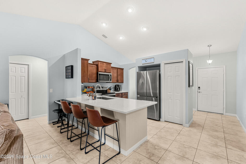 Welcome to this beautifully maintained 2023-built home in the desirable Port St. John area of Cocoa! Offering over 1, 600 square feet of living space, this 4-bedroom, 2-bathroom home is now available for you & your family! Step inside to an open-concept floor plan featuring a spacious living and dining area, perfect for entertaining or everyday living. The kitchen is a standout with elegant quartz countertops, tons of cabinetry, and plenty of prep space for cooking and hosting.The split-bedroom layout provides privacy for the primary suite, while three additional bedrooms offer flexibility for family, guests, or a home office.Outside, enjoy a fully fenced backyard perfect for pets & outdoor activities. Store all of your tools and equipment in the hurricane-rated shed, and appreciate the added convenience of full gutters already installed. Don't miss your opportunity to own this move-in ready home in a growing area close to shopping, dining, and easy access to local beaches!