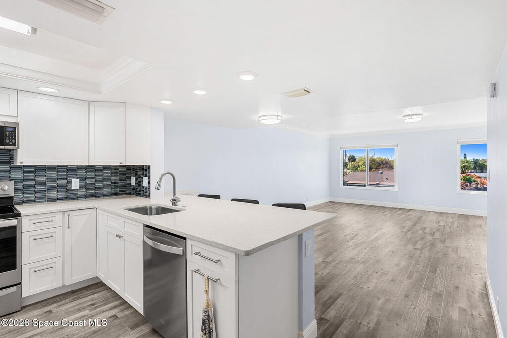 Take in breathtaking western sunset views from this updated3/2 penthouse condo, offering the perfect blend of comfort, style, and waterfront living. Included is a deeded boat slip accommodating up to a 23-foot boat, making it ideal for boating enthusiasts. New impact windows, sliders 2018, milestone and SIRS completed by HOA. Recent updates include custom frameless soft close kitchen cabinets, Quartz surfaces , stainless steel appliances, updated vinyl plank flooring, custom glass shower enclosures in both bathrooms, a new A/C (2022), and a new hot water heater (2024). The washer and dryer have also been updated and may be stacked for added space and efficiency. This is a rare chance to own a penthouse retreat with stunning sunset views and direct boating convenience. Condo complex also offers a heated inground pool and deeded shared garage space.