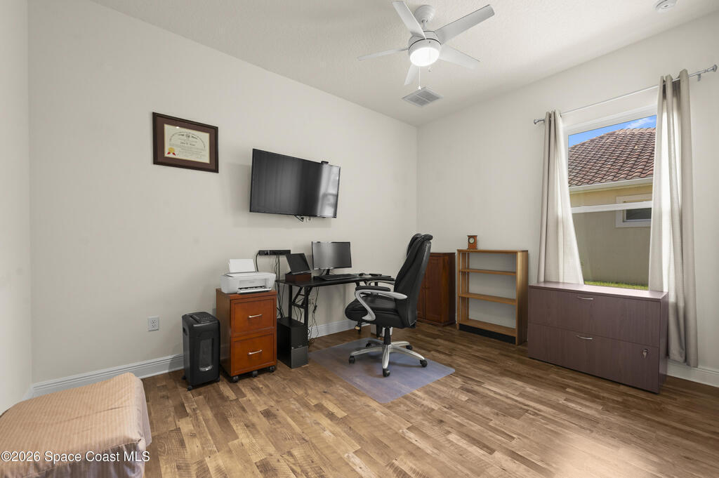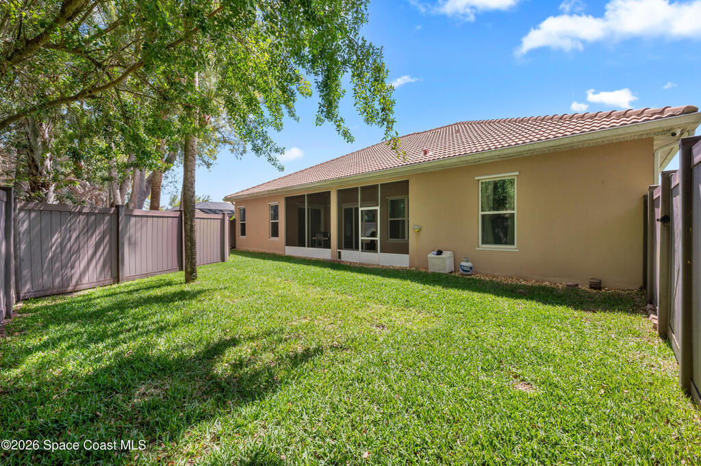 Welcome to your private retreat in the highly sought-after gated community of Milan in Rockledge! This beautifully maintained 4-bedroom, 3 bath home offers a perfect combination of space, comfort, and thoughtful design. From the moment you arrive, you'll appreciate the sense of privacy and security that comes with living in an exclusive gated neighborhood. Inside, the home features a spacious and functional layout ideal for both everyday living and entertaining. The four generously sized bedrooms provide flexibility for families, guests, or a home office setup, while the three full bathrooms ensure convenience and comfort for everyone.The oversized 2-car garage offers ample room not only for vehicles but also for storage, a workshop, or recreational equipment. Step outside to enjoy the fully fenced yard--perfect for outdoor gatherings, kids at play, or simply relaxing in your own private space. One of the standout features of this home is the dedicated doggie spa, a rare & convenient