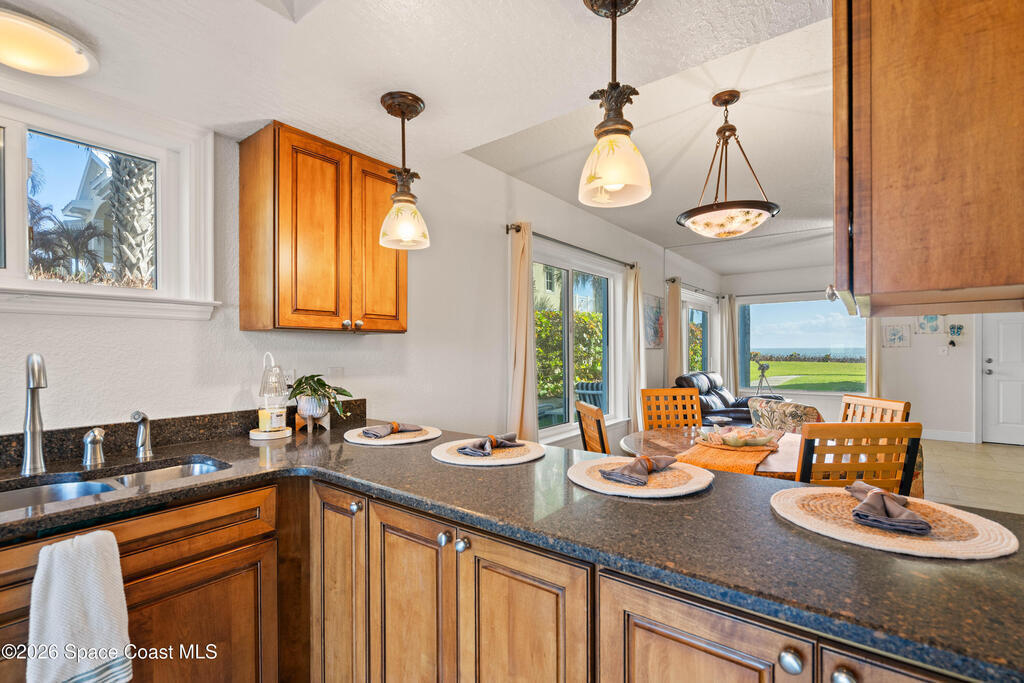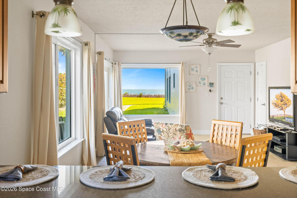 Experience the ease of oceanfront living in a rare first-floor residence that feels more like a private coastal home than a typical condo. This beautifully updated 2-bedroom, 2-bath retreat offers no stairs, no shared walls, and wraparound windows that fill the space with natural light and enhance its quiet, independent feel. Ocean views, direct beach access, private outdoor spaces, garage parking, an additional assigned space, and exceptional storage all add to the lifestyle. Inside, thoughtful improvements include hurricane impact windows, doors, and sliders, granite throughout, updated kitchen appliances, and a refreshed primary bath with pebble stone flooring. The spacious walk-in closet and dedicated vanity area add comfort to the primary suite, while the location places you moments from beachside dining, local shops, parks, and the best of coastal living.