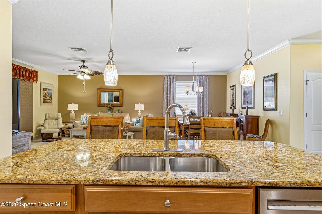 Beautiful single-family home in Heritage Isle, the Hamilton, featuring a desirable Great Room floor plan-4 BD, 3 BD, 2 CAR GARAGE. The open layout offers a spacious kitchen overlooking the dining & family room, complete w/ granite countertops, newer SS appliances & breakfast bar that seamlessly connects to the main living area--perfect for entertaining. The primary suite is a private retreat w/ dual vanity, garden tub, shower & separate walk-in closets. Step outside to an enlarged screened & covered paver patio, plus an additional 10x10 paver area ideal for grilling. Lush landscaping and a private backyard create a serene outdoor setting. Located in the resort-style, gated 55+ community of Heritage Isle, residents enjoy a heated pool, 22, 000 sq. ft. clubhouse w/ restaurant & close proximity to Duran Golf Club. HOA includes exterior maintenance & landscaping for true low-maintenance living. This pristine home is ideal for seasonal or full-time residents, w/ optional turnkey furnishings!