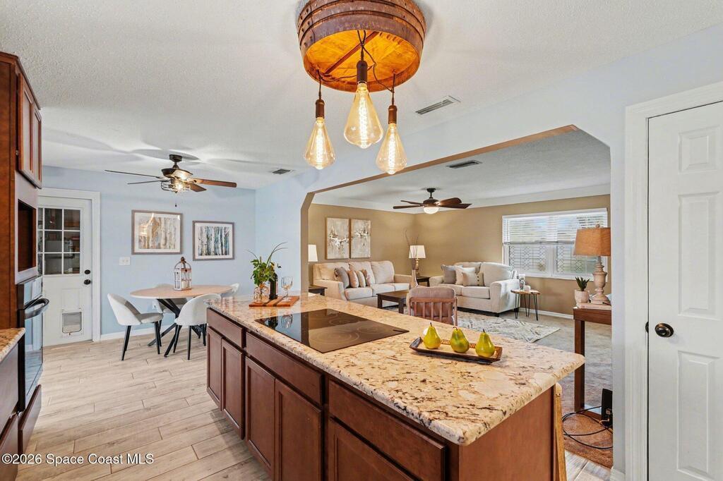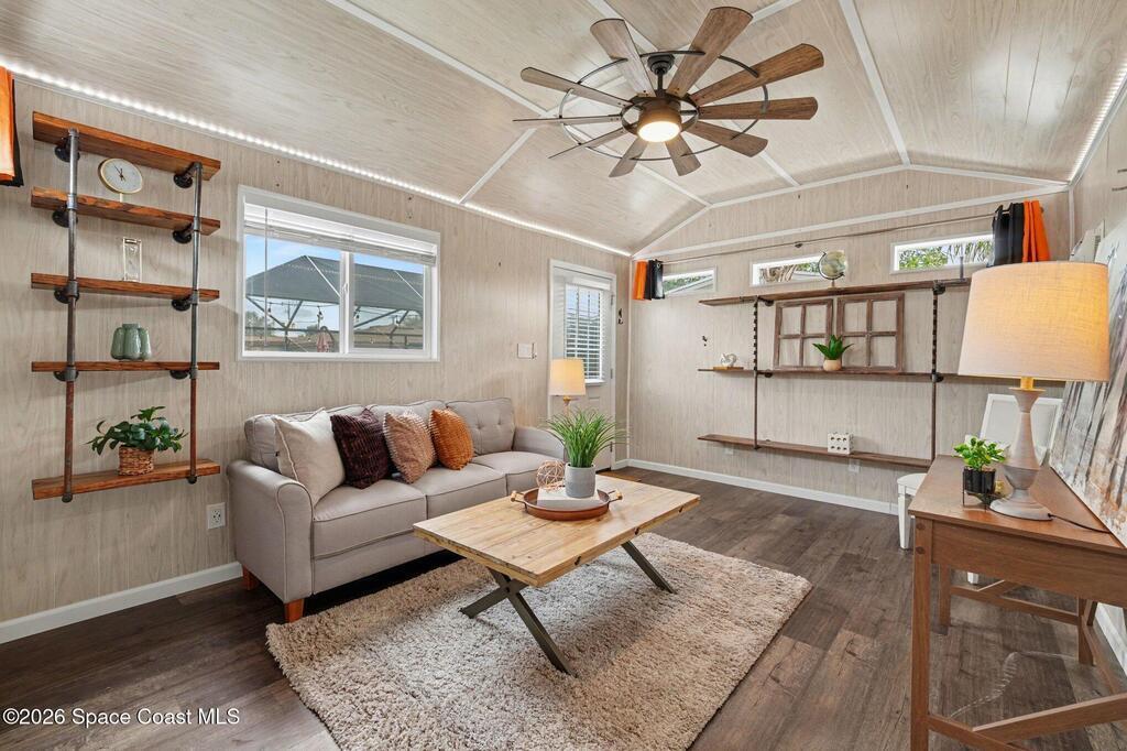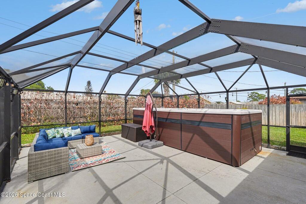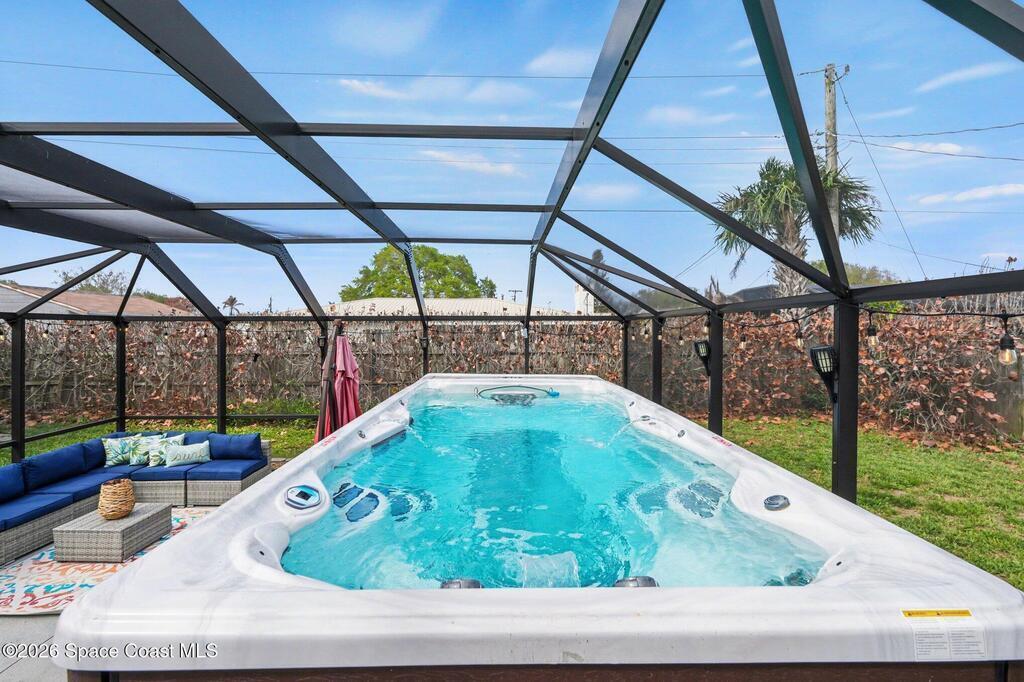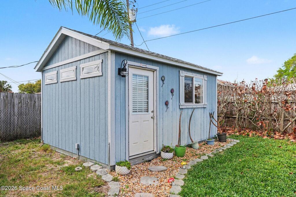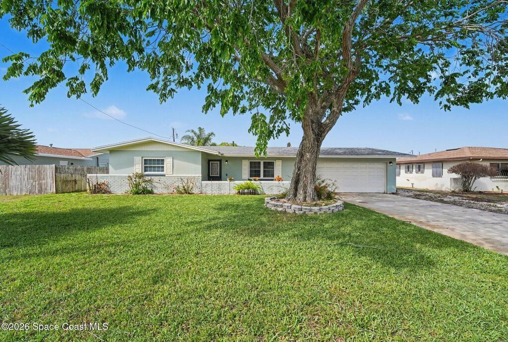 What a perfect location in Merritt Island! Just two houses away from Robert Louis Stevenson School of the Arts Elementary--making it as easy as it gets for walking to school.You're also just minutes from Port Canaveral, offering quick access to cruises, restaurants, beaches, and so much more.This beautiful 3-bedroom, 2-bathroom home is packed with great features, including a ''man cave''--a fully detached, air-conditioned space that's already set up for watching the big games, or perfect for a home office, gym, or workshop. Including this space, the total square footage is 1, 555.Enjoy the huge screened-in porch with an endless pool, designed for swimming against jets or relaxing like a spa. Plus, take in incredible backyard views--perfect for watching rocket launches.This home is ideal for a family or anyone looking to relax in peace.