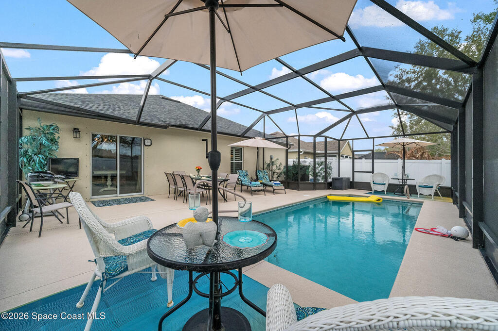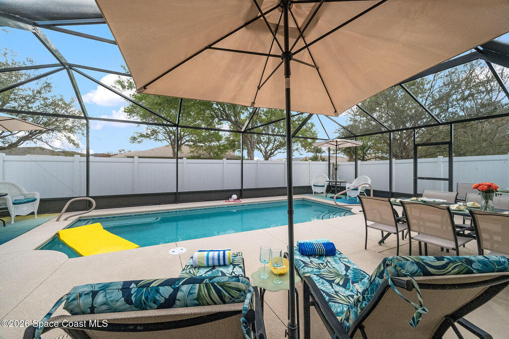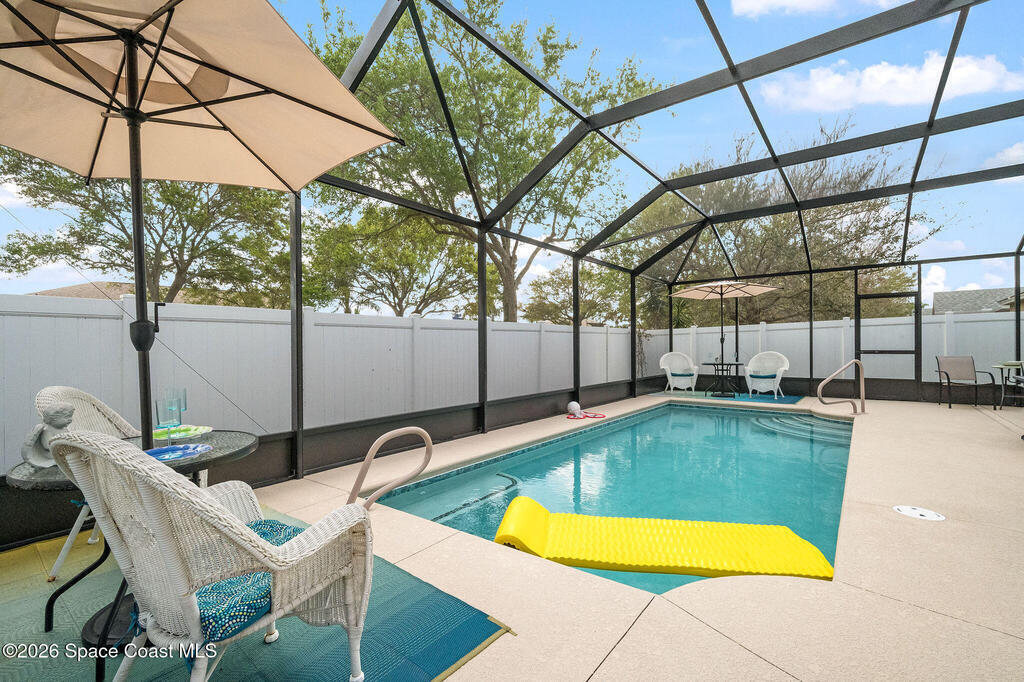 Beautifully upgraded 4-bedroom, 2-bath pool home in sought-after West Melbourne's Manchester Lakes! High ceilings and updated tile flooring throughout create a bright, open feel, while stylish finishes and thoughtful updates make this home truly move-in ready. The spacious kitchen shines with quartz countertops and modern touches--perfect for everyday living and entertaining. Major improvements include a 2023 roof, updated HVAC and water heater, renovated bathrooms, new lighting and trim, plus a 2023 screen enclosed pool and gated vinyl privacy fencing. Enjoy year-round outdoor living in your private backyard oasis. Ideally located near top shopping, dining, parks, and major roadways for an easy commute. Comfort, style, and convenience come together in this exceptional home.