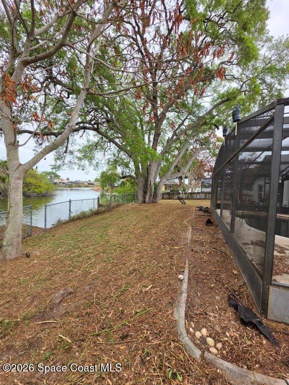 Welcome to your slice of Florida paradise in the highly sought-after Raintree Lake community of Merritt Island! This elegant lakefront home offers 1, 798 sf of thoughtfully designed living space with a desirable split floor plan. Step inside to find an expansive open-concept layout featuring a spacious family room with cozy fireplace, seamlessly flowing into the dining area and a gourmet chef's kitchen. The kitchen is a true centerpiece, showcasing abundant cabinetry, solid surface countertops, custom lighting, and a convenient breakfast bar, perfect for entertaining. French doors throughout the home invite natural light and provide effortless access to the screened-in pool and covered lanai, creating the ultimate indoor-outdoor lifestyle. The private owner's retreat offers a walk-in closet and en suite bath complete with dual sink vanity. Enjoy peaceful lake views from your fully fenced backyard. All information recorded in MLS is intended to be accurate but not guaranteed. Sold As Is