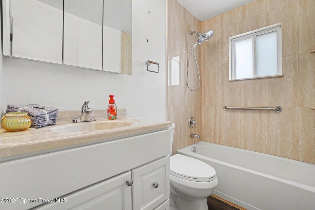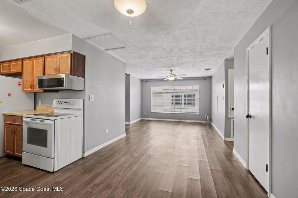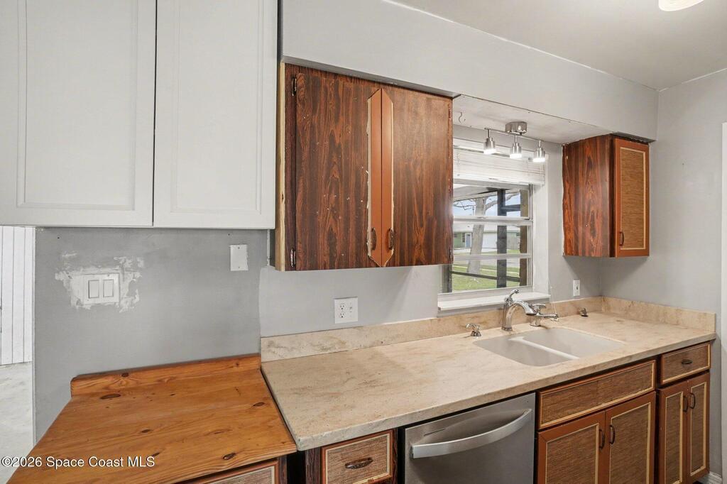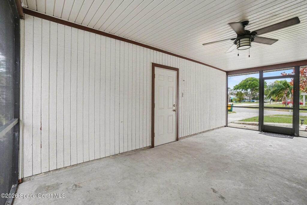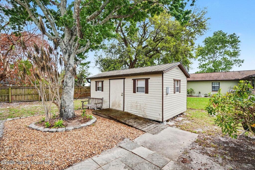 Welcome to this centrally located Melbourne gem offering 3 bedrooms, 2 bathrooms, and a 1-car garage CONCRETE block home that blends comfort, convenience, and peace of mind. Inside, you'll find a clean, modern feel with no carpet, stylish vinyl flooring, newer baseboards, and popcorn ceilings already removed. Custom closets provide smart storage, while updated lighting and fans add a polished touch throughout. The kitchen features a newer dishwasher and sits conveniently next to a spacious interior laundry room. Major updates including plumbing, the electrical panel, and a newer outdoor AC unit add long-term value and confidence.Step outside to enjoy standout features like a durable METAL ROOF, hurricane shutters, and gutters for added protection. The COVERED BREEZEWAY creates a great space for relaxing or entertaining, while the fully FENCED yard includes a powered workshop ideal for hobbies, storage, or projects.