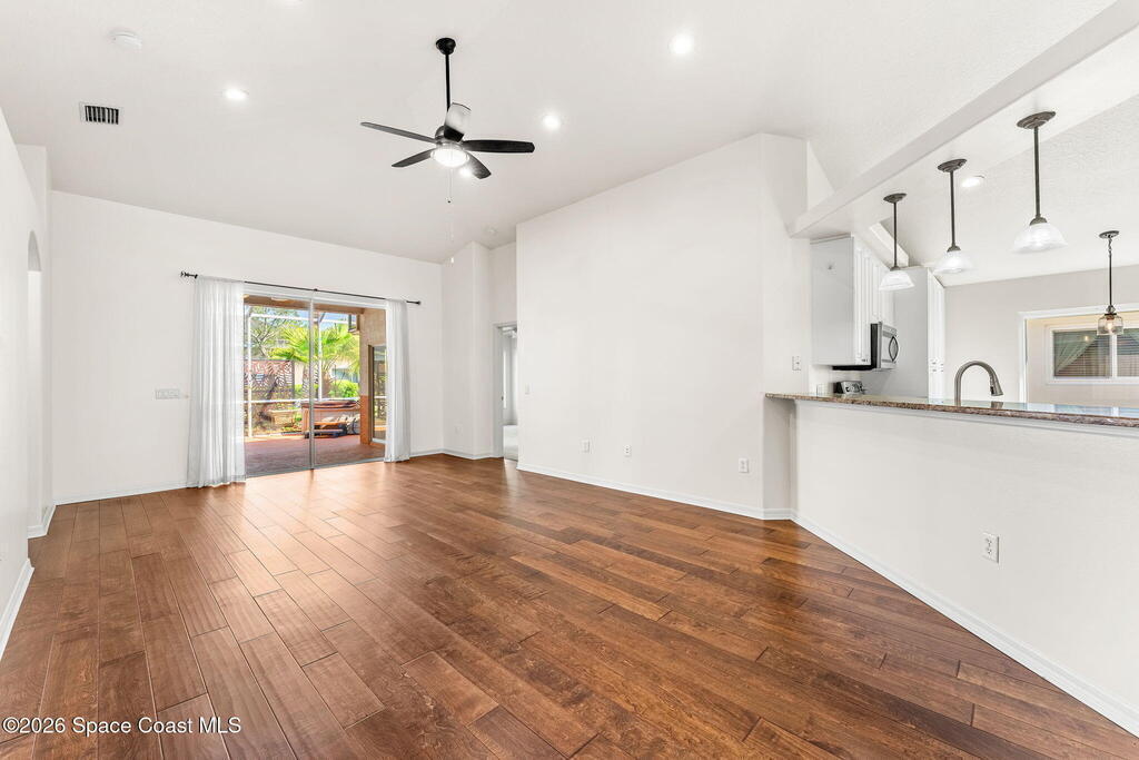Welcome to the sought-after 55+ gated community of Heritage Isle at Viera where this spacious 4-bedroom home offers comfortable living and important updates already completed, including a new roof, hurricane windows, updated electrical, new appliances, new front door, new screens, garage door screen, new faucets and shower fixtures, and a water heater that is approximately 5 years old. The spacious eat-in kitchen features white cabinetry, granite countertops, a built-in microwave, breakfast bar, and dining nook for everyday dining. Engineered hardwood flooring adds warmth to the living room and formal dining room, while all bedrooms are carpeted for comfort. Two secondary bedrooms share a Jack-and-Jill bath, and the fourth bedroom has access to its own separate bath. The primary suite features a large walk-in closet and private bath. Enjoy the extended screened patio with dining area, perfect for relaxing or entertaining. Washer and dryer are also included.