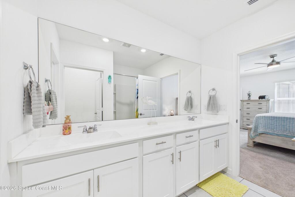 Located in the gated community of Tillman Lakes, this spacious home stands apart with full CONCRETE BLOCK construction on BOTH LEVELS, along with IMPACT-RESISTANT WINDOWS, premium upgrades for enhanced protection & peace of mind while supporting energy efficiency. Inside, an open-concept layout connects the kitchen, dining, & living areas for effortless everyday living & entertaining. The kitchen features white shaker-style cabinetry with crown molding, a large quartz island, and a huge pantry. 2'' faux wood blinds add privacy throughout. The primary suite is conveniently located on the main level, while upstairs offers a bright loft, four additional bedrooms, & a full bath. Enjoy the oversized 400 sq ft trussed & screened lanai backing to the Tillman Preserve, perfect for relaxing/hosting. The front of the home is enhanced by well-maintained, inviting landscaping that adds to its curb appeal. Features like these set this home apart from many newer builds nearby. Washer/dryer included!