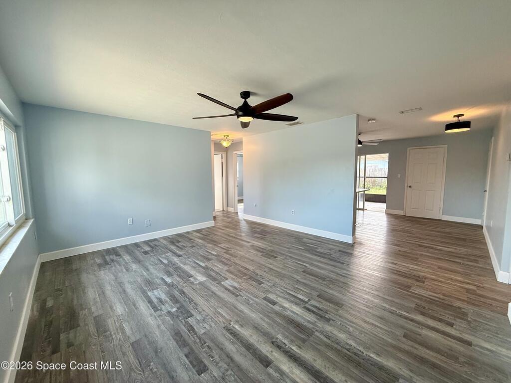 Beautiful 4-bedroom, 2-bath rental featuring an amazing split-bedroom floor plan designed for both comfort and privacy. This home is filled with tons of natural light and offers a renovated kitchen along with tastefully updated bathrooms. A spacious laundry room offers plenty of extra storage and everyday convenience. Enjoy durable and stylish LVP flooring throughout the entire home. Step outside to a large screened porch perfect for relaxing or entertaining plus a spacious shed for additional storage. Situated on a desirable corner lot, the property is completely fenced with ample space, including room large enough to store a boat or RV. Conveniently located just minutes from Eau Gallie Boulevard, providing easy access to shopping, dining, and major roadways.Move-in ready and available now--don't miss this one!