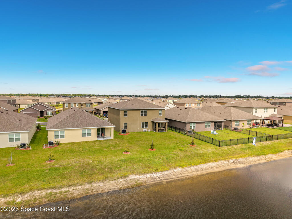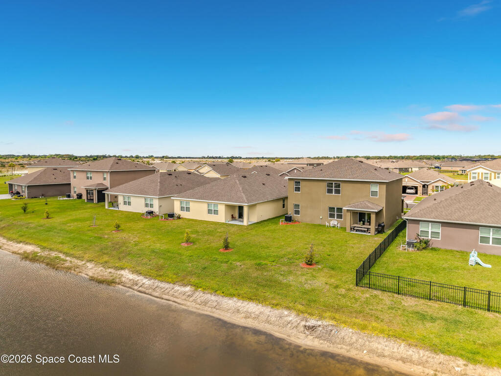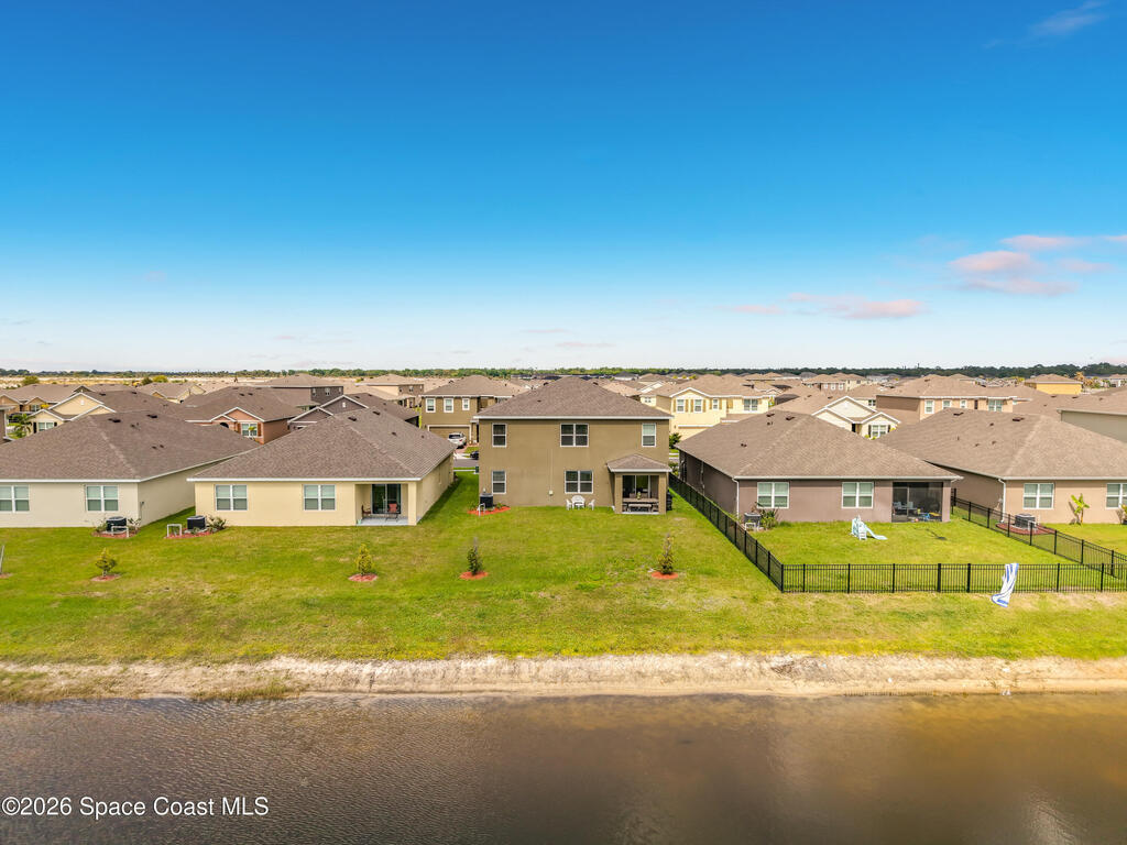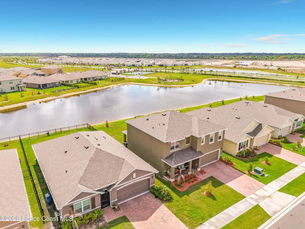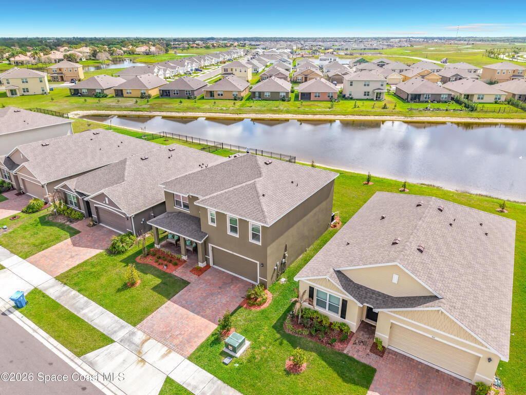 Welcome to 905 Dugan Circle SE in Palm Bay, located in the up-and-coming NEW Cypress Bay West community. Why wait to build when you can move right into this constructed 2024 2-STORY BLOCK WATERFRONT HOME offering an impressive 3, 088 square feet under roof! The Hayden floorplan features 5 bedrooms, 3 full bathrooms, an additional family room, and a versatile second-story loft, perfect for a home office, media room, or play space. Designed for both comfort and functionality, the open-concept layout provides seamless flow between the living, dining, and kitchen areas, making it ideal for everyday living and entertaining. The kitchen provides granite counters, stainless steel appliances, a walk-in pantry and a breakfast bar perfect for busy mornings. Downstairs there is one bedroom and a full bathroom which offers space for guests. The second floor offers 4 bedrooms including a spacious primary retreat with double walk-in closets and a modern bathroom including a large walk-in shower.