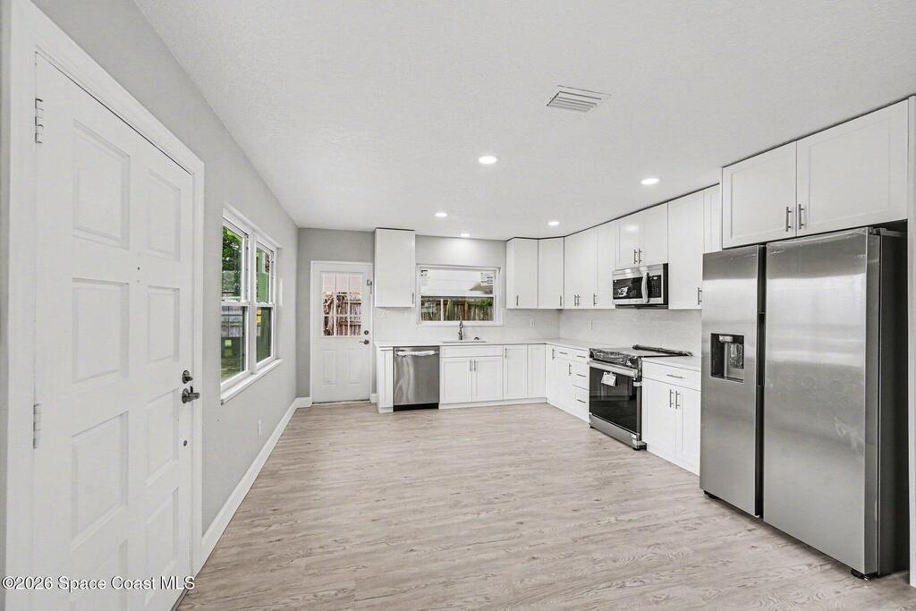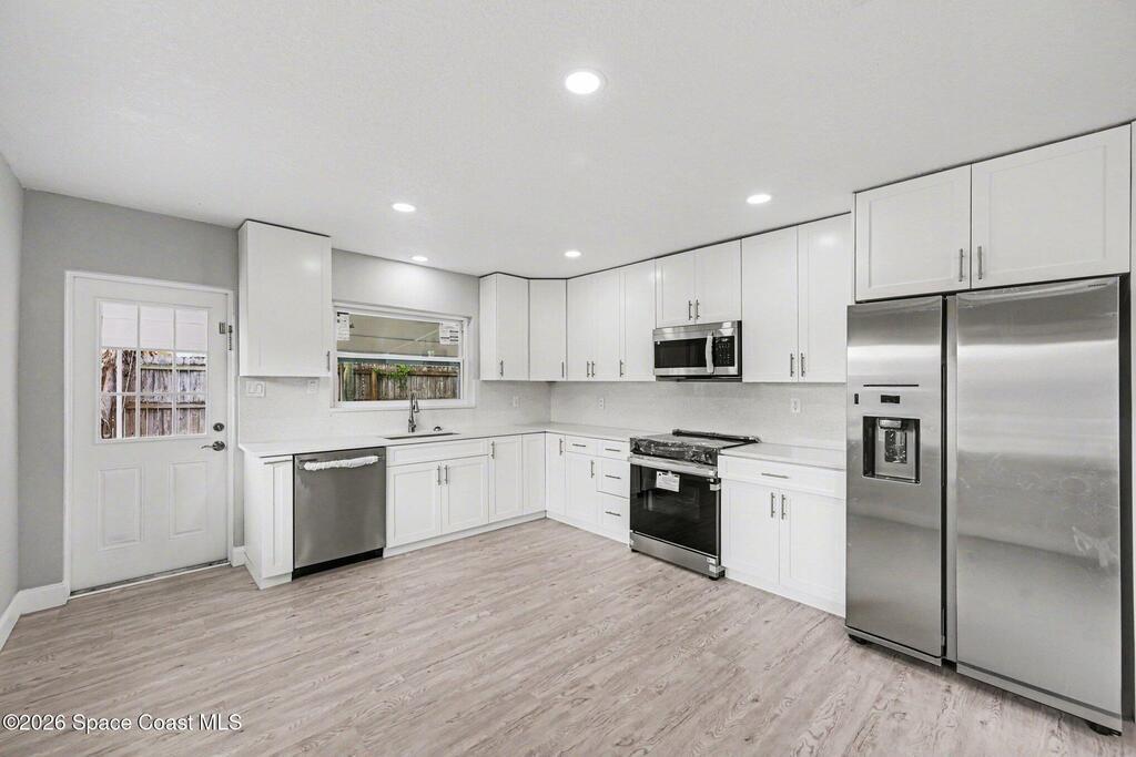 Welcome to this gorgeous 3 bedroom 2 bathroom corner lot home loaded with incredible upgrades & designed for comfortable, modern living. Every major system has been thoughtfully updated, giving you peace of mind & stylish finishes throughout. Enjoy NEW WINDOWS, New A/C system & new ducts, Updated plumbing, Metal roof.. The beautifully updated kitchen features new stainless steel appliances, sleek quartz countertops, modern cabinetry & contemporary LED lighting. Both bathrooms have been tastefully renovated with fresh fixtures and finishes. Throughout the home, you'll find beautiful new vinyl flooring, fresh interior & exterior paint, new light fixtures & remote-control ceiling fans, creating a bright and inviting atmosphere in every room. Built in storage room in the backyard. Family-friendly neighborhood with NO HOA, . Close to shopping, beaches, restaurants & golf courses. Move-in-ready gem truly has it all