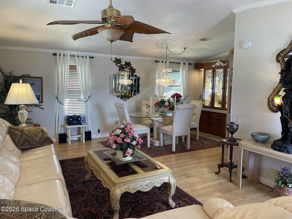 AMAZING OPPORTUNITY to live in this river community. A packed bag is all you need to move into this very elegant, fully furnished home. Everything you need is here! This 55+ community has easy water access whether you like boating, paddle boarding or kayaking. 2 marinas are very close for all your rental needs. You can enjoy the heated pool all year and join in the many activities offered at the Clubhouse in this very active community. You can walk or golf cart to local grocers, restaurants and shops. This home has been so will taken care of. The floors have a beautiful wood- look laminate throughout the entire home and are very solid. The price has just been reduced by $40, 000 for a quick sale due to health issues. Will you be the new luck owner?