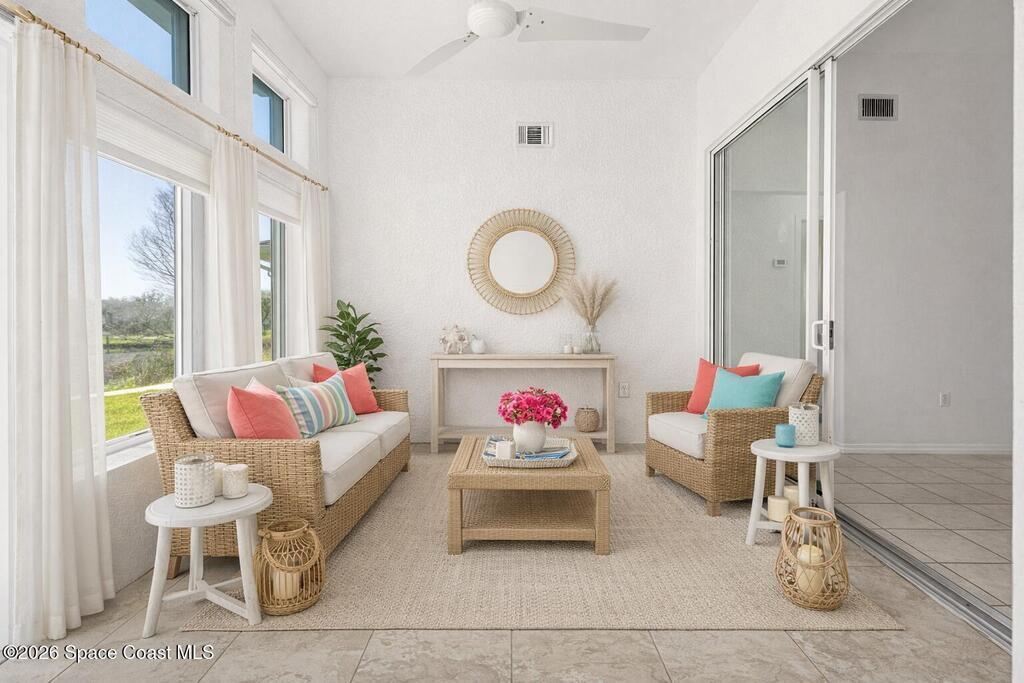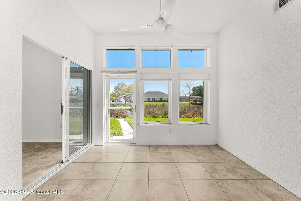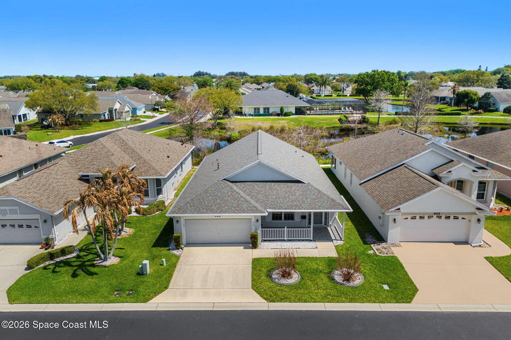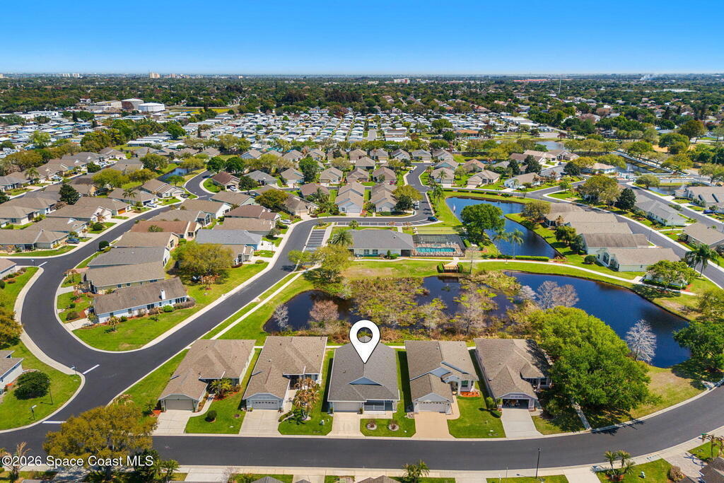 Enjoy easy Florida living in the desirable Gated 55+ community of Compass Pointe, conveniently located in the heart of Melbourne! This 3BD/2BA home is ready for new owners to make it their own, offering a spacious floor plan with a separate living room & family room, a dining area plus breakfast nook just off the kitchen. Add a set of rocking chairs & relax on the charming front porch or unwind in the sunroom overlooking peaceful pond views. The roomy primary suite features slider access to the sunroom for seamless indoor-outdoor living. Additional highlights include a 2-car garage with electric roll-down screen & electric roll-down hurricane shutters on all openings for added convenience & peace of mind. Just a short stroll to the clubhouse with a heated pool & spa, shuffleboard, bocce, putting green, fitness center & a full calendar of activities. Compass Pointe is ideally located just minutes to healthcare facilities, shopping, dining, golf & Brevard's beautiful beaches!
