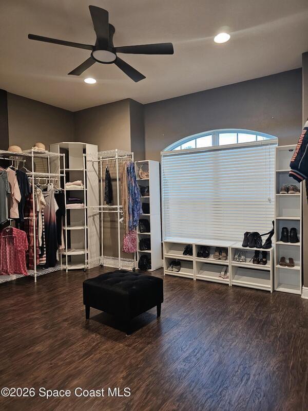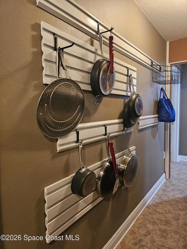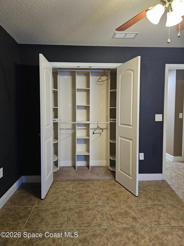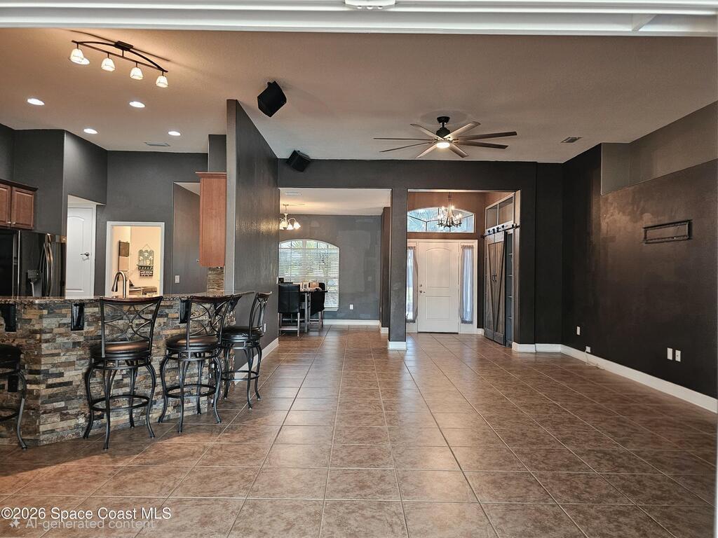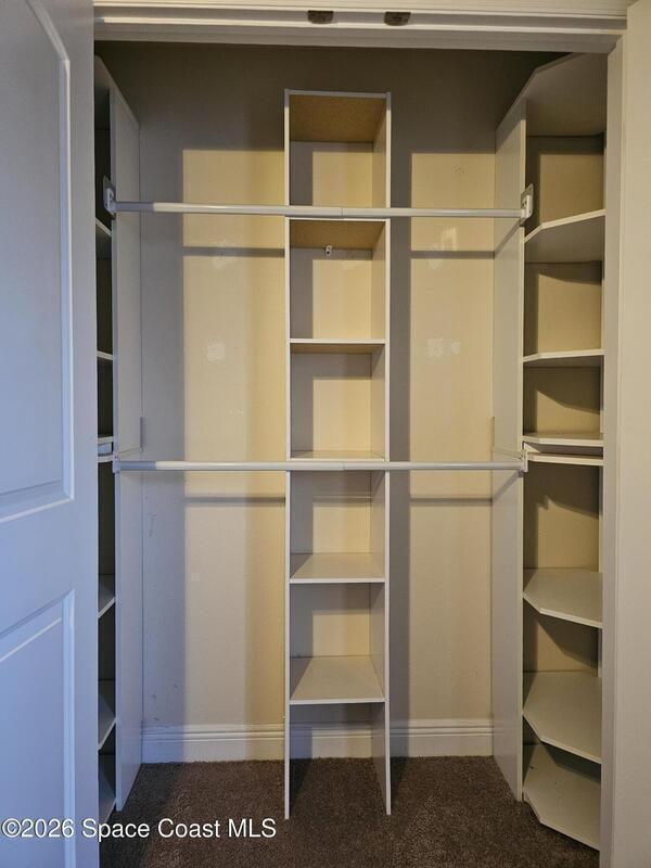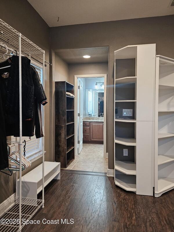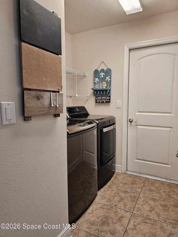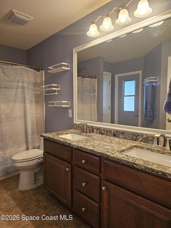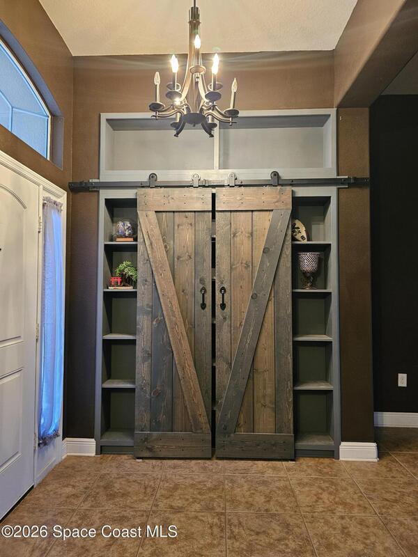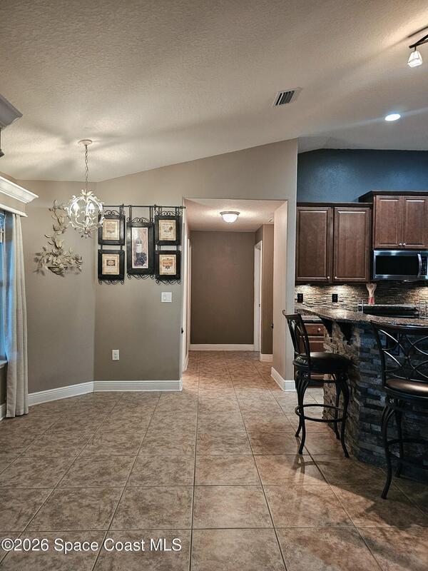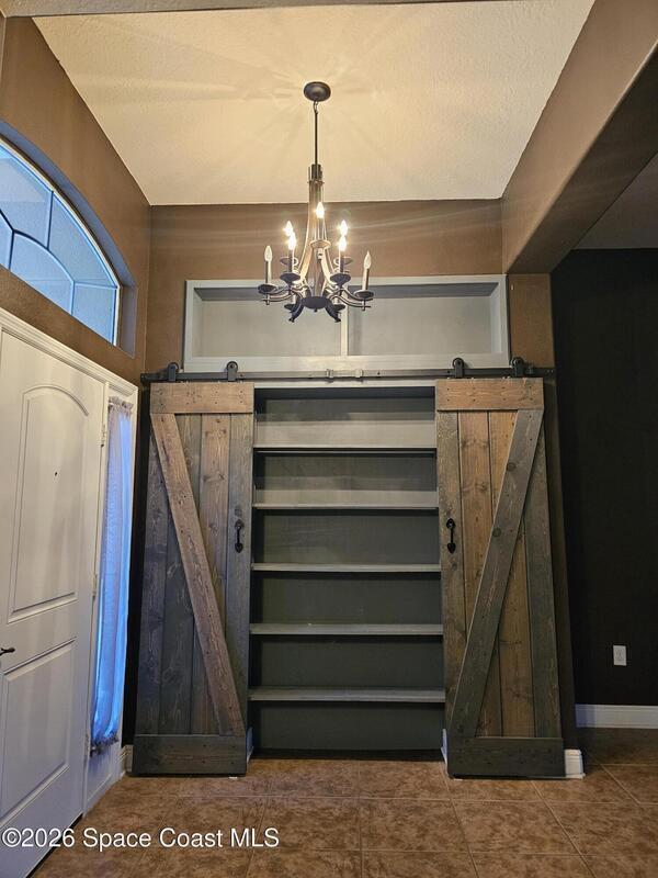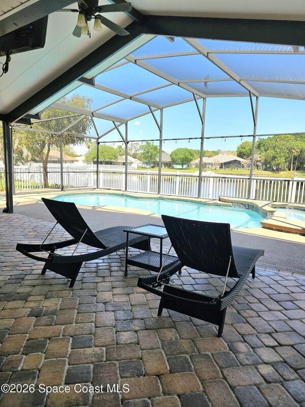 Discover the perfect blend of comfort, style, resort-level outdoor living in this beautiful 4-bedroom, 2-bath home located in West Melbourne. Home offers a seamless layout ideal for everyday living & entertaining. Open, functional layout connecting kitchen, family room, & dining room. Kitchen w/ granite countertops, black stainless appliances, 42-inch cabinets, two pantries, breakfast bar, & breakfast nook. Spacious primary suite featuring a custom room size closet & a split-vanity bath w/ large, tiled shower & dual shower heads. Stylish touches including built-in shelving, barn-door accents, & 12-ft impact sliding doors for energy efficiency & accordion shutters for peace of mind. Sparkling pool w/ sun shelf & spa spilling over into pool. Plumbed propane for a grill or generator. Fenced backyard w/ paver walkways, firepit area, & a gate leading to the pond. Accordion shutters 2024, Roof 2023, appliances & washer/dryer 2020, A/C 2019. Generator electrical hookups.