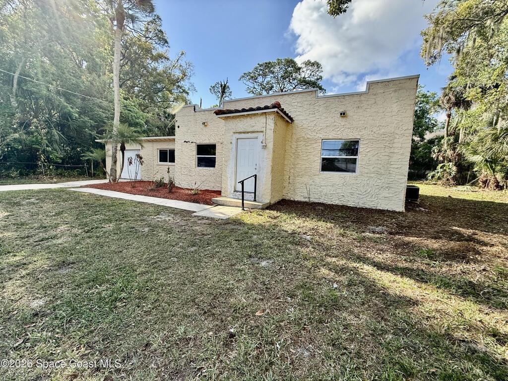 This three bedroom, two bath home is located in the heart of central Titusville. Home sits on almost a third of an acre lot which is fenced. The home features a split floor plan for added privacy, a spacious living room with a cozy fireplace and dedicated dining area perfect for gatherings. The kitchen has ample space for cooking and storage. Additional highlights include a one car detached garage with two over head doors located on each end of garage. It's generous yard and convenient central location is close to shopping, schools, major roadways and government agencies.