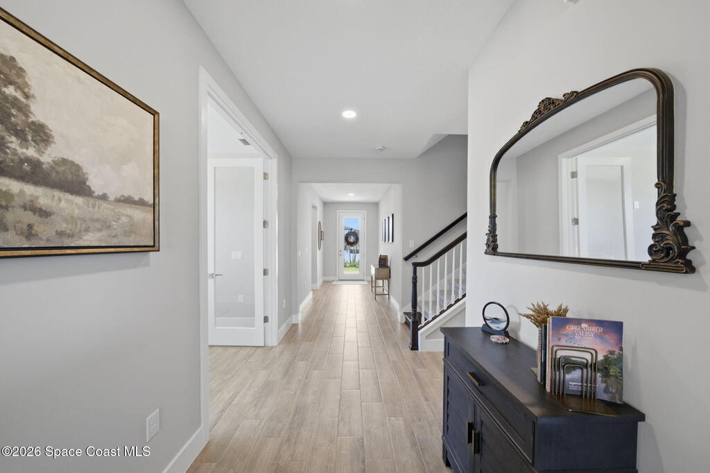 Why wait to build in Viera when this is already done, better, and now priced UNDER APPRAISAL VALUE? Plus ALL IMPACT RATED WINDOWS & DOORS!This nearly brand-new POOL home sits on a premium corner lot with sweeping views of 2 tranquil lakes, creating an elevated backdrop. Offering 4BD/4.5BA PLUS an office that could be a 5th bedroom, a bonus room upstairs, & 3-car garage, the home is designed for both everyday living & entertaining.The gourmet kitchen features designer finishes, custom cabinetry, high-end appliances, and an oversized island, all flowing into the spacious great room & dining area with water views.Step outside to your private backyard retreat with a $140, 000 custom pool and spa...something new construction can't offer without added time & cost.Primary suite on the 1st floor; upstairs includes a bedroom, bath, & bonus room ideal for guests or multigenerational living. Located in Crossmolina, within golf cart distance to A-rated schools, parks, and The Avenues