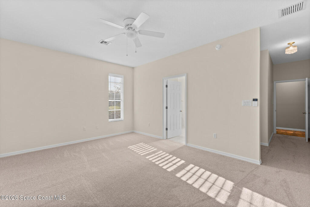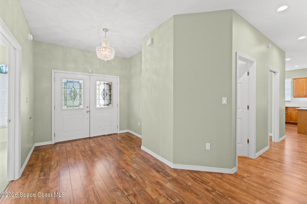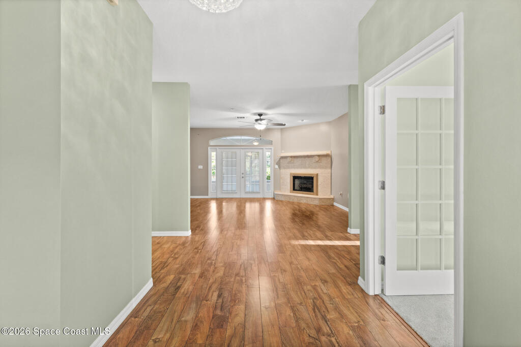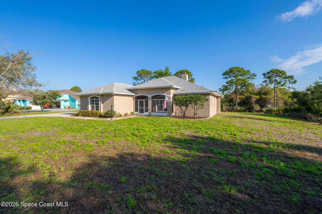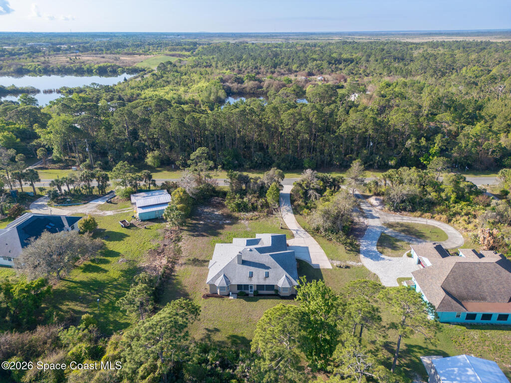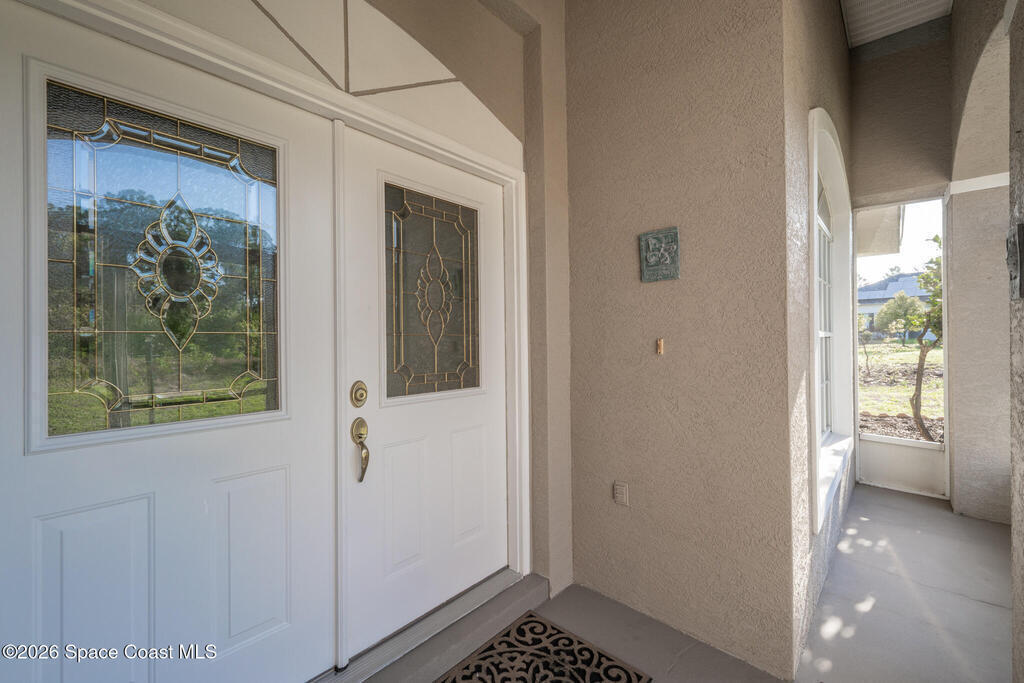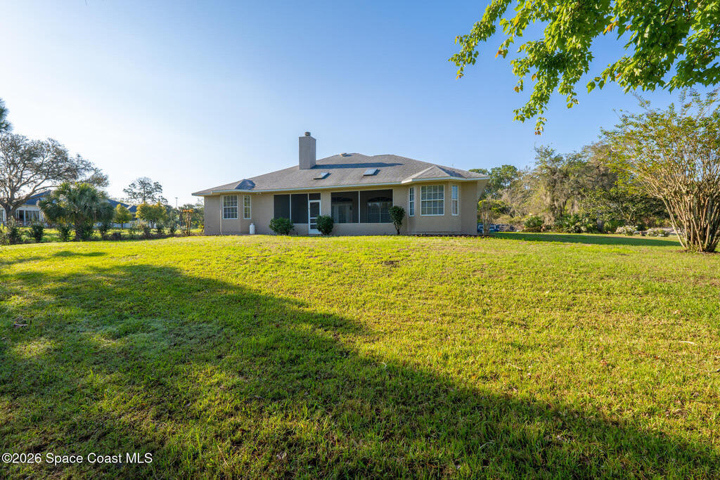 Looking for a custom block home on an oversized secluded lot in Titusville, look no further! This stunning 3 bedrooms, 2.5 bathrooms, with an oversized 2 car garage home has plenty of room for your family with 2247 square feet of living space. The inside features a gas fireplace with coral travertine stone, laminate flooring throughout the main living area, new water heater, new carpet and freshly painted bedrooms. The master bathroom features a curbless shower, a jet soaker tub that feels like your own spa, and a large walk-in closet. The outside features 1.17 acres, 2021 roof, irrigation system, and front and rear screened in porches. Enjoy indoor outdoor Florida living on your rear patio, perfect for entertaining and enjoying your coffee and view. There is plenty of room for a pool and detached garage. Highly desired location near Fox Lake Park where you can enjoy fishing, boating, playground, walking trails, volleyball, and festivities.