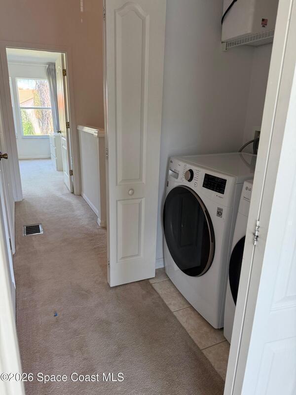 Beautifully maintained 2-bedroom, 2.5-bath townhome in the highly desirable gated community of Hampton Park, offering abundant natural light, a spacious kitchen with ample cabinetry and pantry, two generous upstairs bedrooms each with a full bath, and an LG washer and dryer conveniently located on the second floor. Enjoy a screened-in back patio with extra storage, hurricane shutters, and access to a beautiful community pool with serene water views. Ideally situated in the heart of Suntree/Baytree, this home provides quick access to dining, pubs, golf, tennis, pickleball, the Brevard Zoo, The Avenues shopping, I-95, nearby beaches, top-rated schools, and so much more.