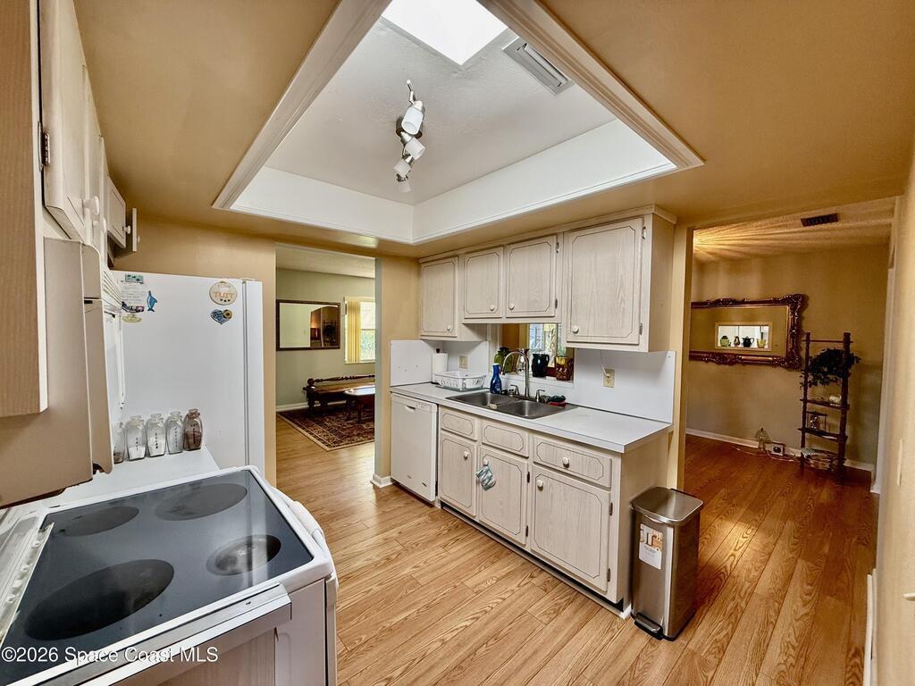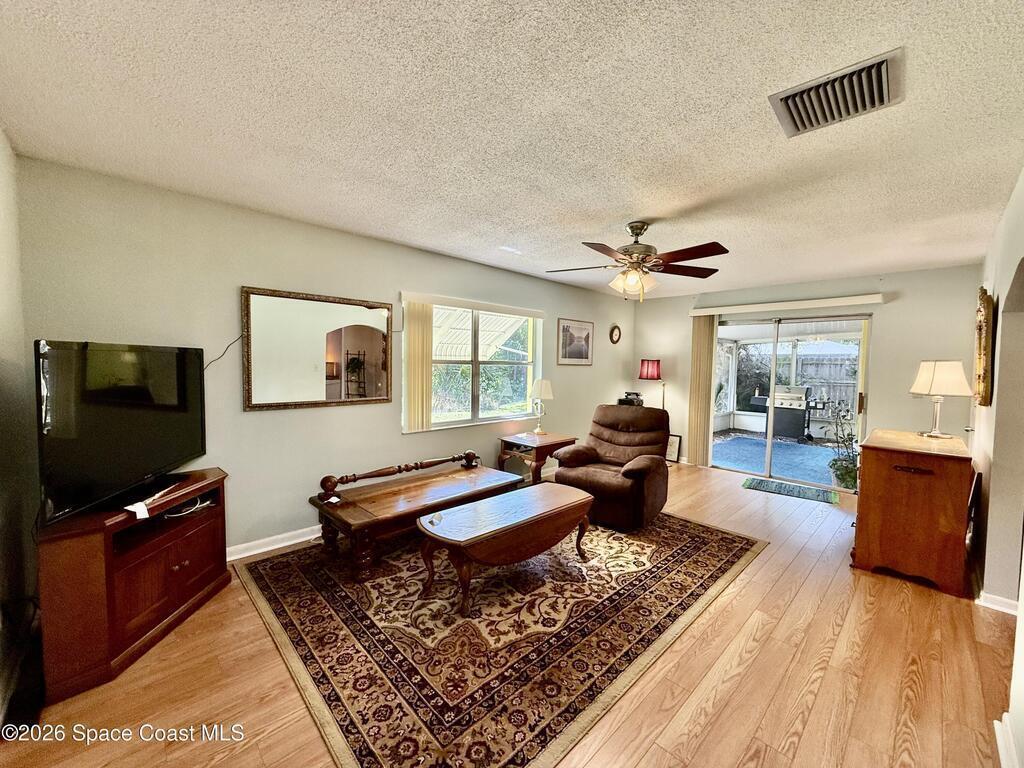 Welcome to this well maintained 3 bedroom, 2 bath home located in the desirable Sherwood Estates area of North Titusville! This property offers a functional layout with spacious living areas, including a comfortable family room perfect for relaxing or entertaining. Home features formal dining with formal living room, oversized 2 car garage, providing ample space for vehicles, storage, or a workshop. Enjoy Florida living year round from the screened porch overlooking the backyard-ideal for morning coffee or evening gatherings. Major updates provide peace of mind, including a roof replaced in 2017, gas water heater 2020, dishwasher 2021 and new air conditioning system with gas furnace replaced in 2024. The interior was upgraded with luxury vinyl plank flooring in 2022, offering both style and durability. The exterior has been pressure washed and painted as of March 2025, giving the home excellent curb appeal. Conveniently located near shopping, dining and major road ways. Sold as is.