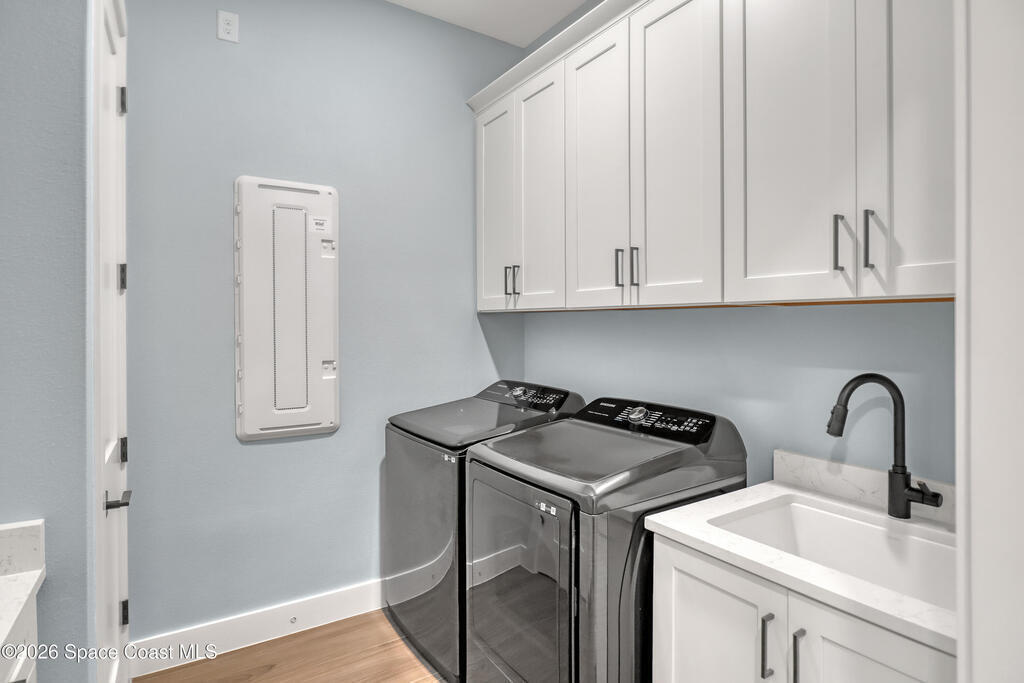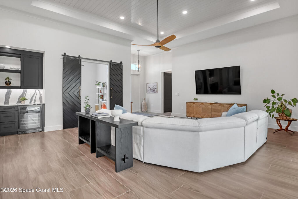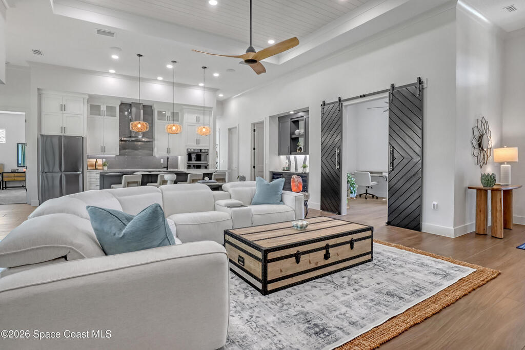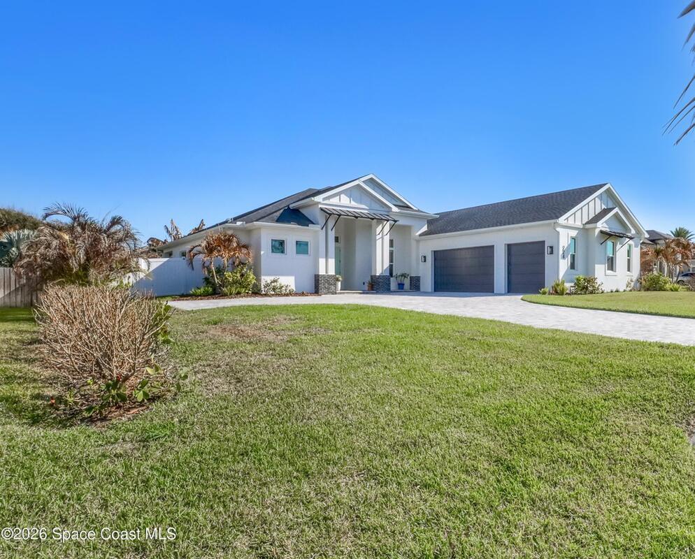 Welcome to 224 Woody Circle! A fully customized modern coastal luxury home thoughtfully expanded & enhanced with high-end architectural, structural, & designer upgrades.This 2023 newly built 4/3/3 residence features added square footage under air, a private guest suite with full bath, a dedicated study with an 8' custom barn door, and 8' solid-core doors throughout for elevated scale & presence.The chef's kitchen is anchored by a striking 6cm Cambria Bentley quartz island & showcases premium Samsung appliances, including an induction cooktop, wall oven with steam and convection, beverage & wine coolers, ceiling-height shaker cabinetry & Luxe Brizo fixtures. Large format Wood-look porcelain tile flows throughout the main living areas, while the spa-inspired primary suite offers a freestanding soaking tub, rain shower system, floor-to-ceiling designer tile, quartz surfaces, & refined custom finishes. Built for both beauty & performance, the home includes PGT impact-rated windows & doors,