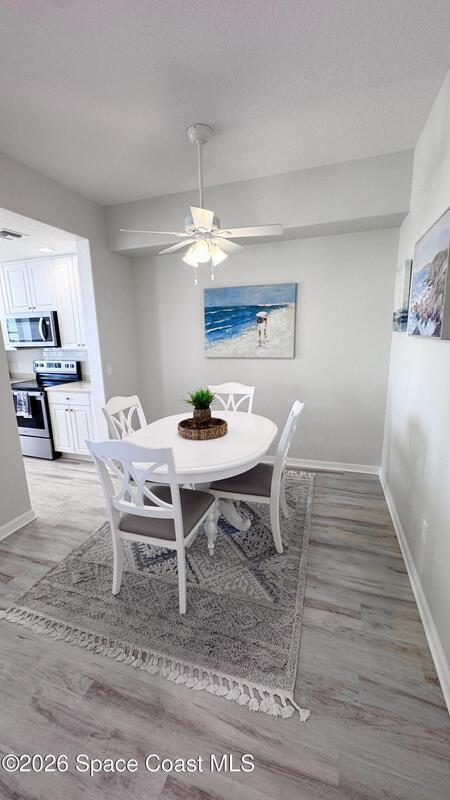 Welcome to The Terraces at Heritage Isle, widely regarded as one of the premier 55+ resort-style communities in Viera, Florida. This beautifully remodeled lakefront condo offers 1, 235 square feet of elegant living space, featuring 2 bedrooms, 2 bathrooms, and soaring ceilings, all located on the highly desirable quiet 4th floor with elevator access.From the living room, kitchen, and screened lanai, enjoy breathtaking panoramic views of the tranquil lake and the Duran Country Club Golf Course--one of the best vantage points in the community. Designed in a light, coastal style, this condo has been thoughtfully updated with top-of-the-line, all-climate waterproof LVP flooring throughout, soft white designer wall tones, and high-end appliances. The unit is fully furnished with tasteful, upscale coastal furniture and includes a large smart TV, making it truly move-in ready.The well-planned floor layout begins with a spacious foyer and hallway that leads to two private bedrooms, two bath