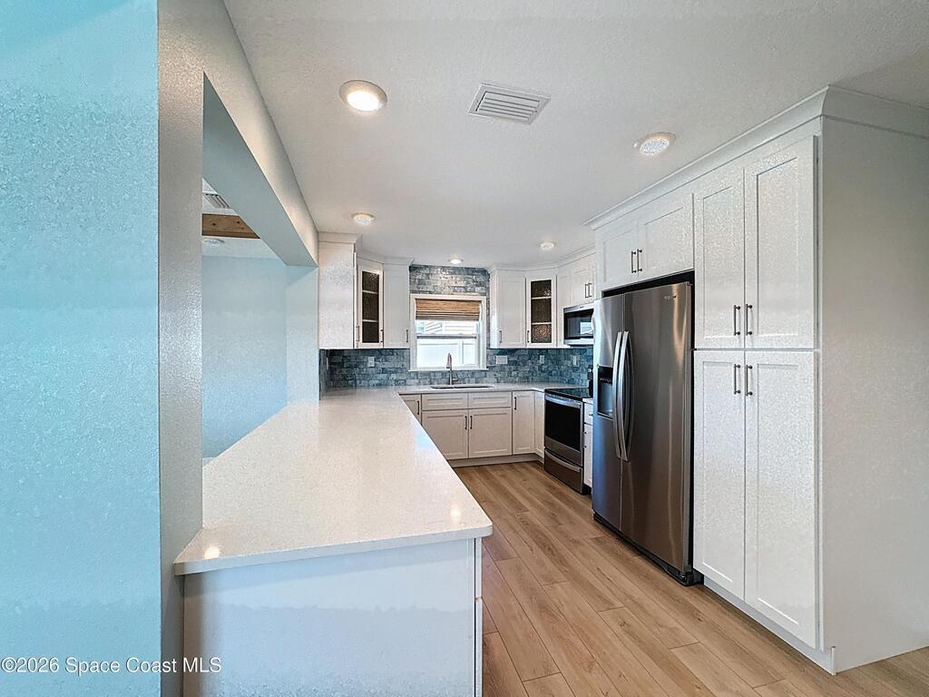 Live the Dream! Quick drive to beaches, Port Canaveral, Kennedy Space Center... and Orlando is a mere 40+ minutes away! Beautifully updated home on a deepwater canal w/no low bridges & short ride to locks for ocean access. Each guest bedroom has en-suite bathroom access thanks to the Jack and Jill bathroom. Primary Suite also boasts sliders to pool. Half-bath for company use. Large great room. Huge eat-in kitchen opens to another living area perfect for formal dining or another family room. Beautiful kitchen w/plenty of counter space, pantry cabinets, coffee bar & lovely water views. Multiple outdoor living areas: enjoy the sparkling pool, dine alfresco poolside, unwind by the firepit, savor the storms in the covered patio. Rent includes pool & basic lawn care. Solar electrical panels equal minimal (if any!) power bills. Washer, Dryer, Poly-wood furniture, fire-table, and 4 wall-mounted TVs included w/the home. Executive living in Coastal Style!