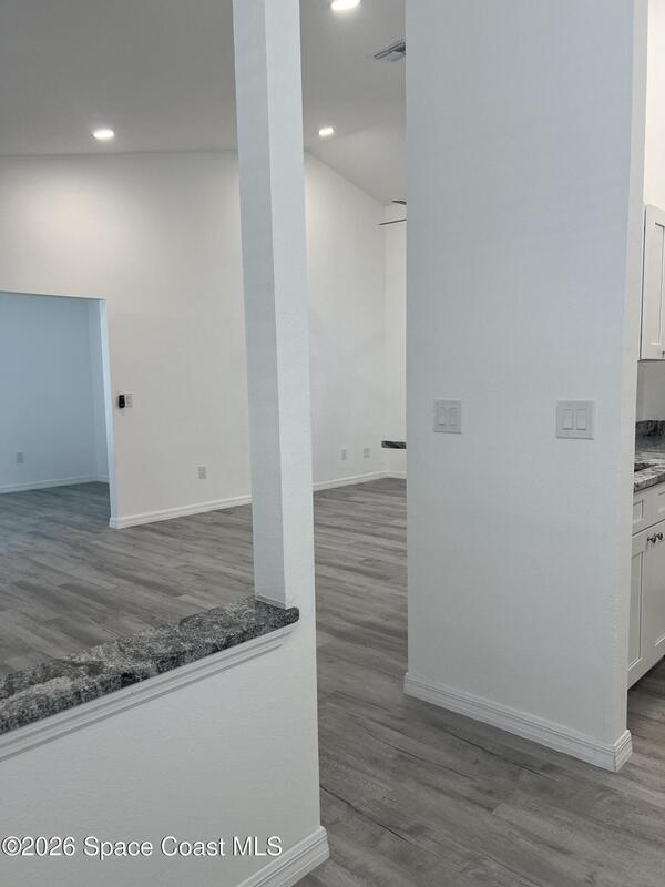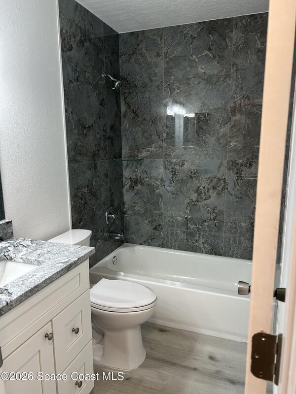 Tastefully renovated and clean as a whistle! NE Palm Bay home just across from waterfront homes on Turkey Creek. Luxury vinyl plank flooring throughout the home with the exception of the wet areas, updated kitchen and baths and an oversized two car garage with washer dryer hookup. City water and sewer. This one will not disappoint!
