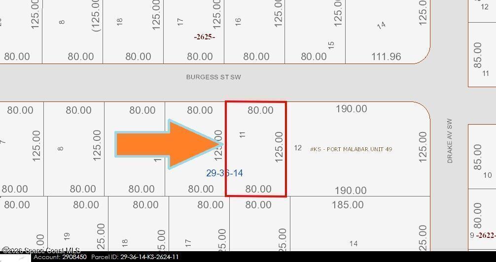 It's a 0.23 acre single family residential lot [Rs2 Zoning] available in the buildable Port Malabar Unit #49 of Palm Bay. Nicely located in a very rural setting of the SW section near the famous Compound area, this lot is just 2.4 miles -5 minutes- to the famous Compound area, 2.8 miles -7 minutes- to Publix Shopping, 1.5 miles - minutes- to Bayside High and West Side Elementary Schools, 11.6 miles -22 minutes- to the Melbourne Square Mall, and just 17.3 miles -33 minutes- to the beaches in Indialantic. From Exit #176 of I-95 go west on Palm Bay Road NE. Turn left on Minton Road and proceed south for 3.3 miles. Turn right on Jupiter Boulevard SW and left on De Groodt Road SW. Proceed south for 2.5 miles and turn right on J.A. Bombardier Boulevard Proceed west for 0.9 miles and turn right on Madden avenue and right on Burgess.