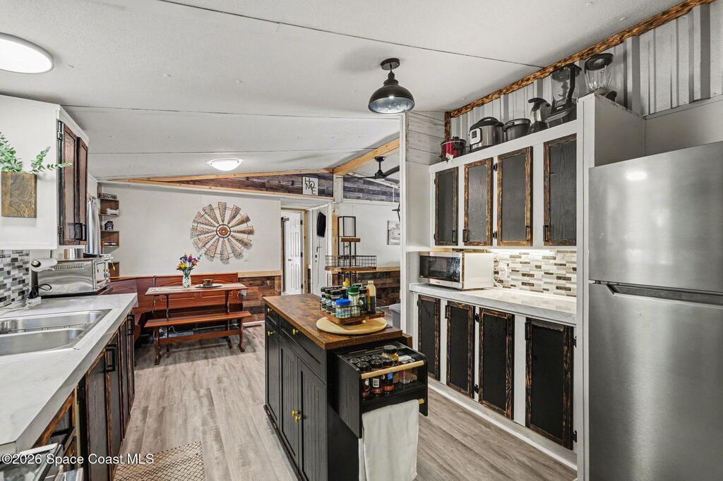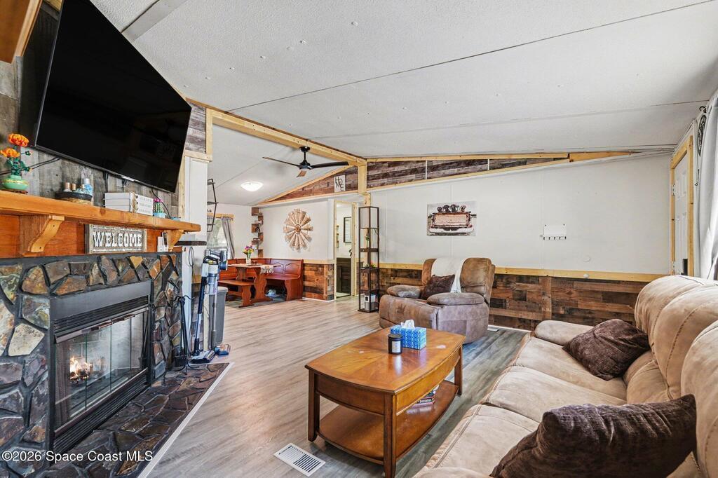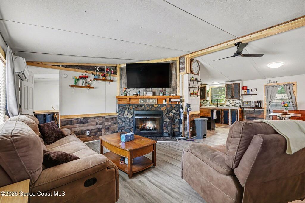 Beautiful 3 bed/2 bath manufactured home was relocated to this corner lot site in 2024. Several updates noted; all sub flooring replaced, electrical, & plumbing, New stainless-steel appliances, updated kitchen & baths, and luxury Vinyl flooring throughout. The home is cooled and heated with the newly installed Turbro 3 zone mini split system. The Farmhouse accents make this home cozy and comfortable. A lovely woodburning fireplace is the centerpiece of the living area. The ample yard is completely fenced with chain link and Vinyl fencing. Location is convenient to shopping and dining. Quiet and relaxing times to be enjoyed around the firepit in the fall/winter. Extra 12 X16 Shed will remain for all storage needs.