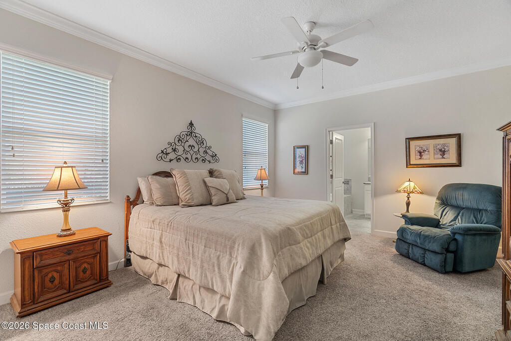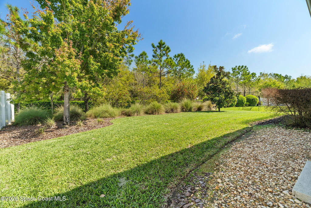 Lovely home located in Harmony! 3 bedrooms, 2 bathrooms and 2 car garage. Rocking chair front porch, with open floor plan, Lovely crown molding in main living and all tile flooring & carpet in bedrooms. Kitchen features granite counter tops, tile backsplash & closet pantry, 42'' ivory wood cabinets & recessed lighting, large island counter, GE Microwave (2016), Range (2026), Refrigerator (2026), Dishwasher (2026) and Owner's Suite large closet. Dual sink vanity, tub w/separate shower. House features gutters! You will have lots of privacy in the large backyard with no rear neighbors! Screen rear porch to relax. Water softener. Plantation shutters in front formal living room.
