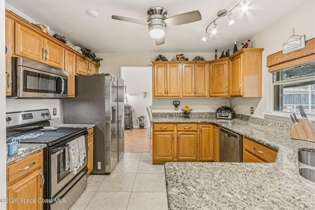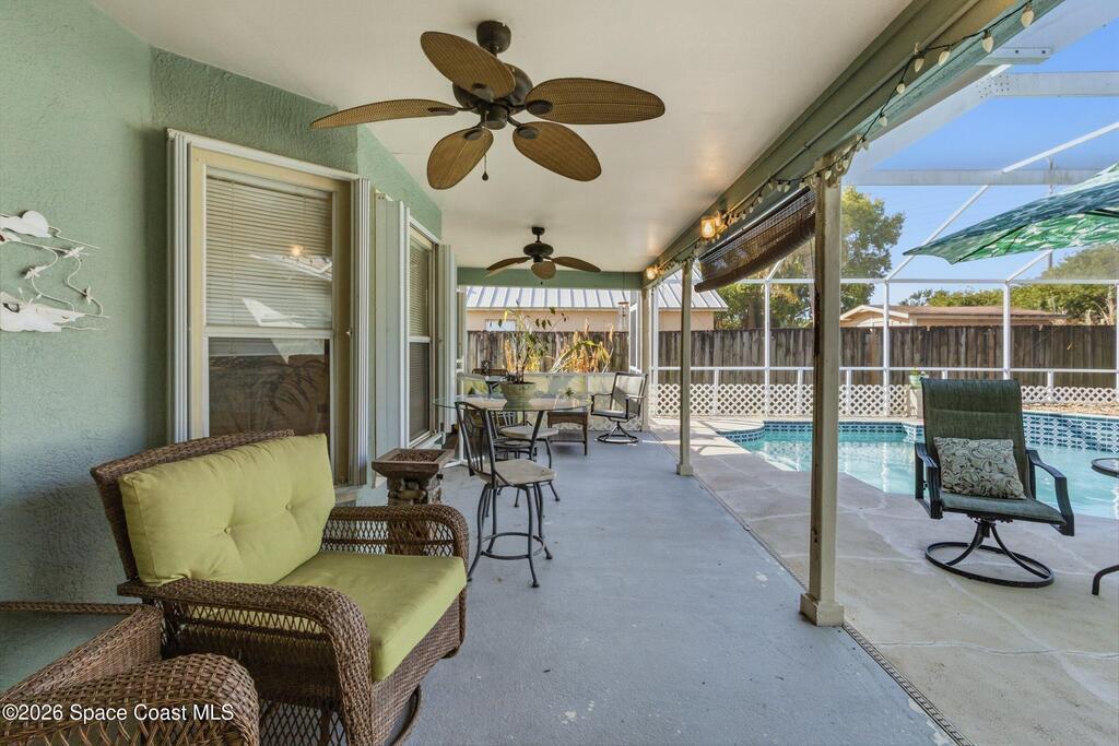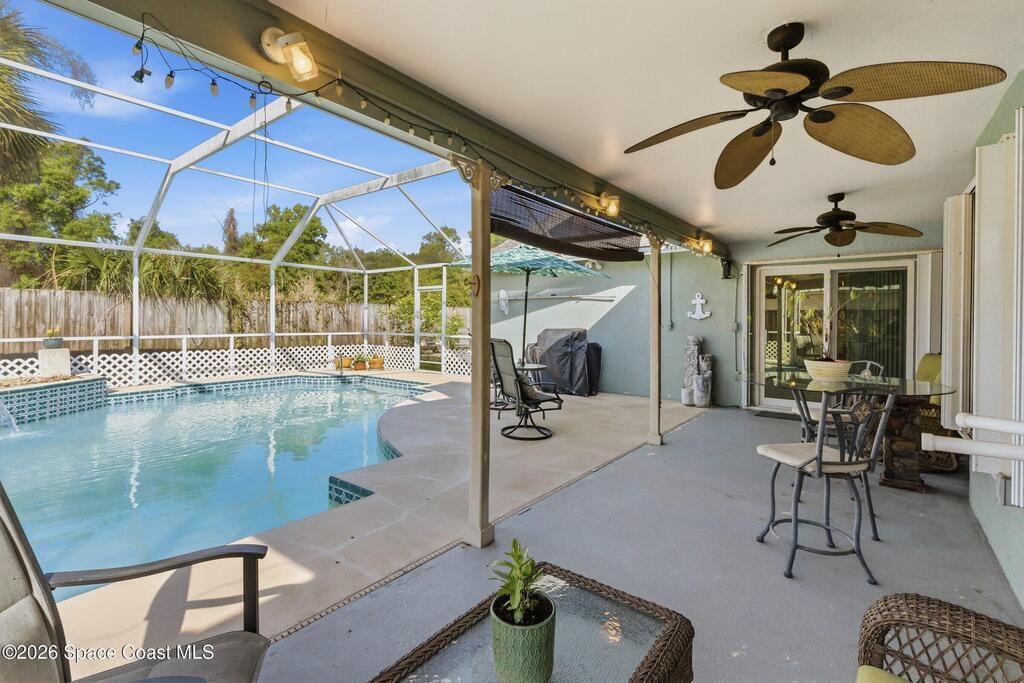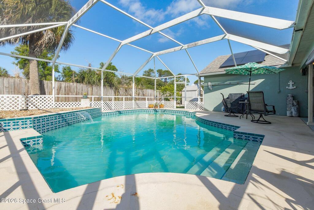Discover the perfect balance of privacy and togetherness in this stunning 4-bedroom, two-bath pool home. The open split-bedroom layout is a host's dream, featuring a kitchen pass-through that keeps you connected to guests while entertaining inside or out. Beyond the tropical pool deck and inviting atmosphere, this home offers true peace of mind with all relatively new utilities and high-efficiency solar panels. Featuring vaulted ceilings and a private fenced yard, this property is a gorgeous forever retreat designed for comfort, hosting, and modern ease. NEW ROOF 2025! HVAC 3 years old, POOL PUMP 2025, NEW PLUMBING 2024