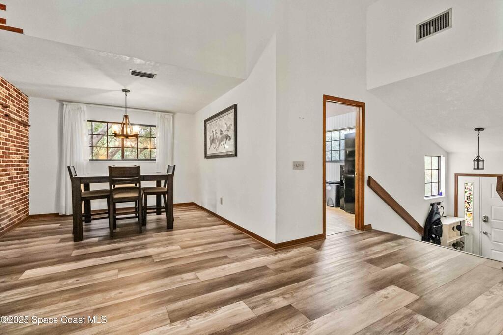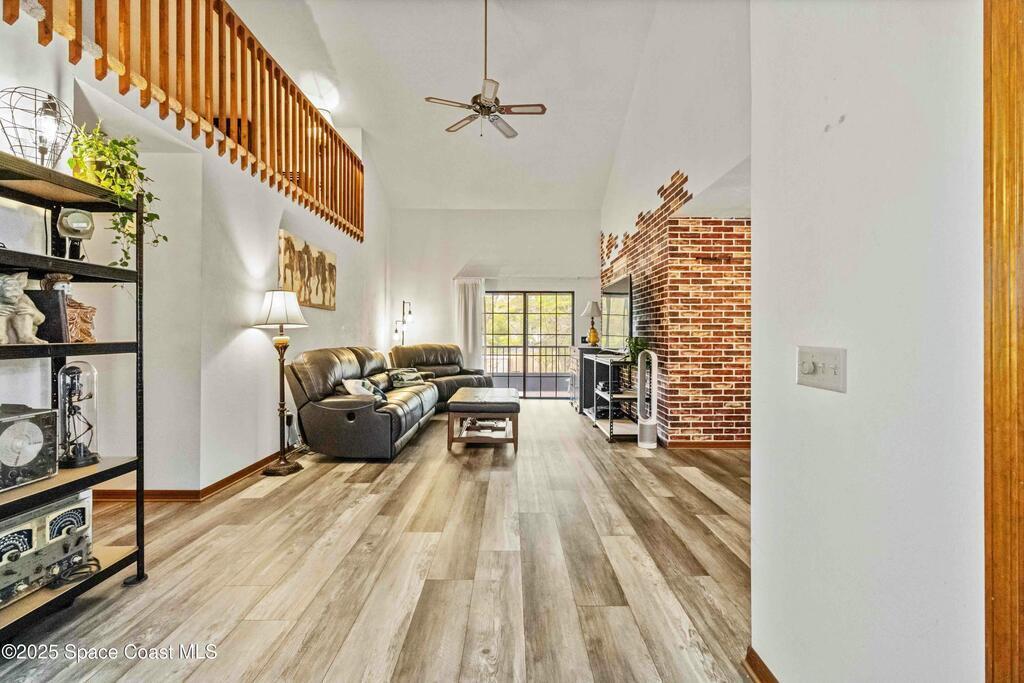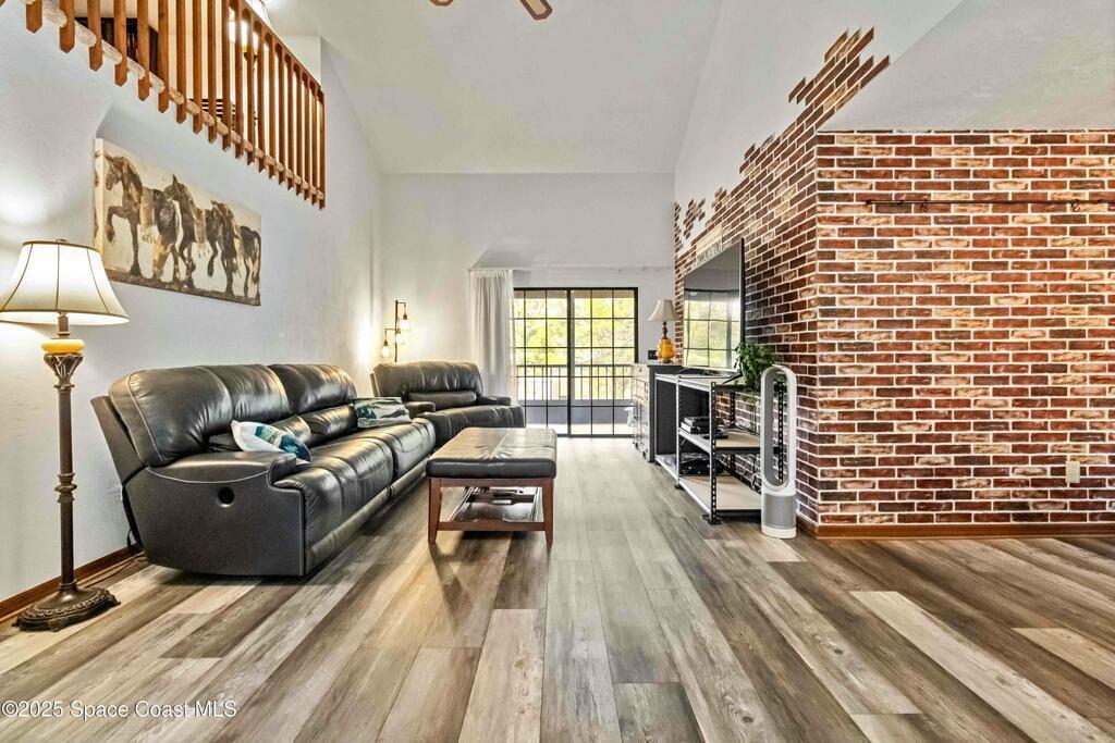 This stunning 4 Bedroom, 3 Bath, 1 Car Garage waterfront condo is located in a highly sought-after West Melbourne neighborhood. The open floor plan w/over 2000 sq ft boasts newer luxury plank vinyl, a large great room w/vault ceilings, sep dining area & a spacious loft, perfect for additional living space or a home office. Enjoy modern living with stainless steel appliances in the eat-in kitchen. Downstairs is a large master bedroom & updated bath, plus two bedrooms & guest bath. Indoor laundry with convenient all-in one washer/dryer. The screened balcony overlooks a serene pond, providing a tranquil setting. Upstairs features a large loft, storage, & a bedroom w/bath for extra privacy. New roof in 2024. Residents have access to community amenities inc clubhouse, fitness room, pool tables, pool & a car wash station. Assoc. fees incl lawn & building maintenance, trash, high speed internet, cable, roof, pest control, pool, & ext insurance. Don't miss out on this opportunity