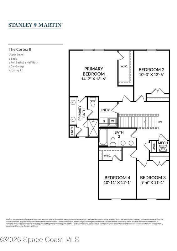 Welcome to the Cortez II, a two-story single-family home offering 1, 876 sq. ft. of living space with 4 bedrooms and 2.5 baths. The open-concept main level features a modern kitchen with a large center island and seating, flowing into the great room and dining area with access to a rear patio. Upstairs includes a spacious primary suite with walk-in closet and en-suite bath with dual vanities and linen closet. Three additional bedrooms, a loft, full bath with dual sinks, and a laundry room with sink complete the second floor. Functional layout ideal for everyday living and entertaining. *Photos are from a similar home.