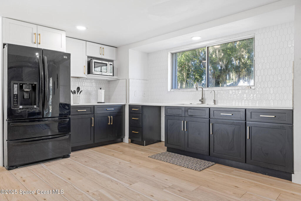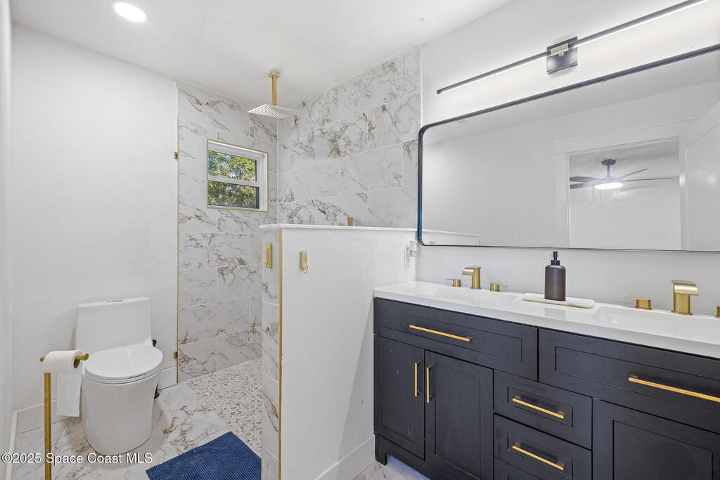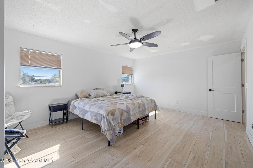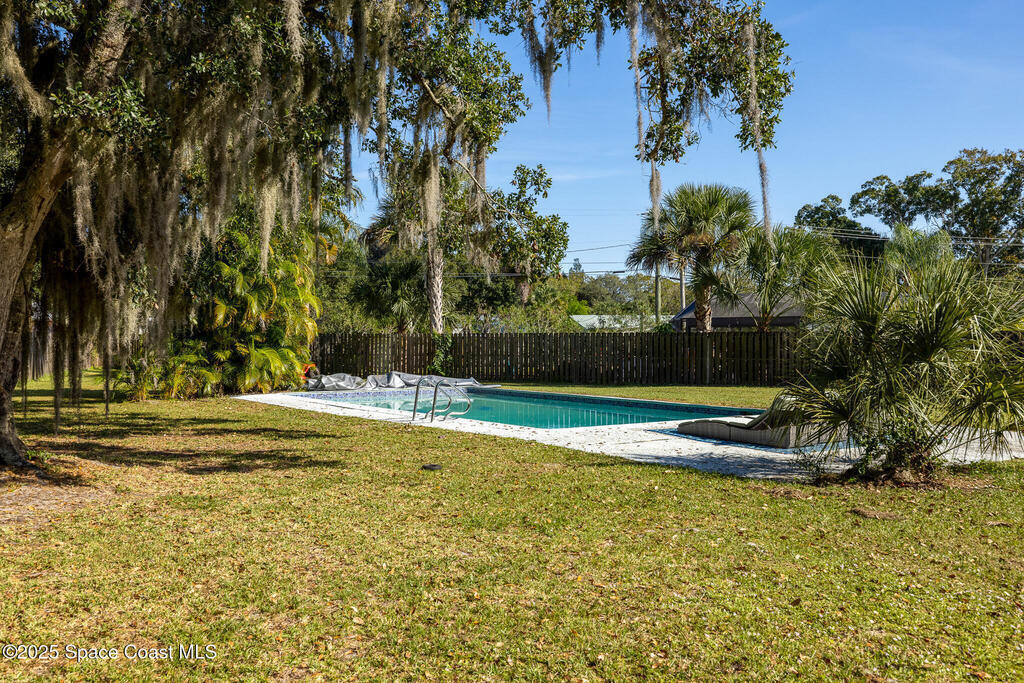 This beautifully remodeled 4-bedroom, 2.5-bath pool home sits on a spacious .37-acre fenced lot in the heart of Palm Bay. The open floor plan showcases abundant natural light, modern finishes, and seamless flow throughout. The customized kitchen features quartz waterfall countertops, a walk-in pantry, new outlets with USB, and matching stair treads that blend perfectly with the main flooring. The living room is enhanced with surround sound speakers, ideal for entertaining. The primary suite offers a customizable walk-in closet, while all bedrooms are generously sized and bathrooms thoughtfully updated. Step outside to your private pool oasis and take advantage of the extra-large two-car garage. The home gym also conveys. An exceptional opportunity in a prime Palm Bay location.