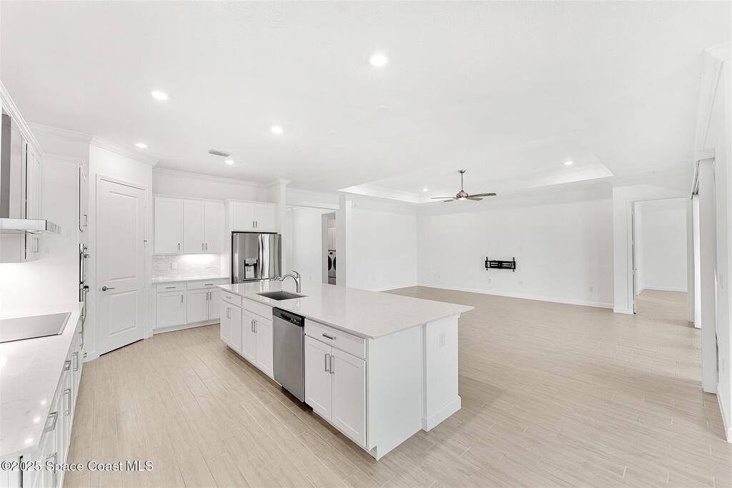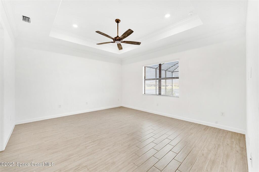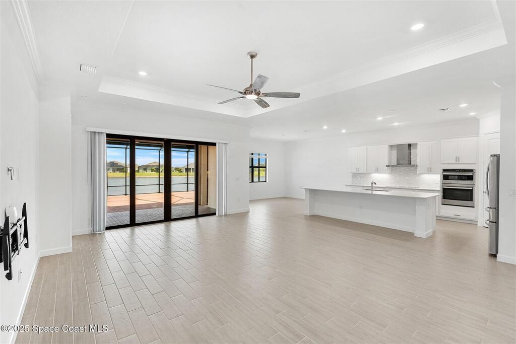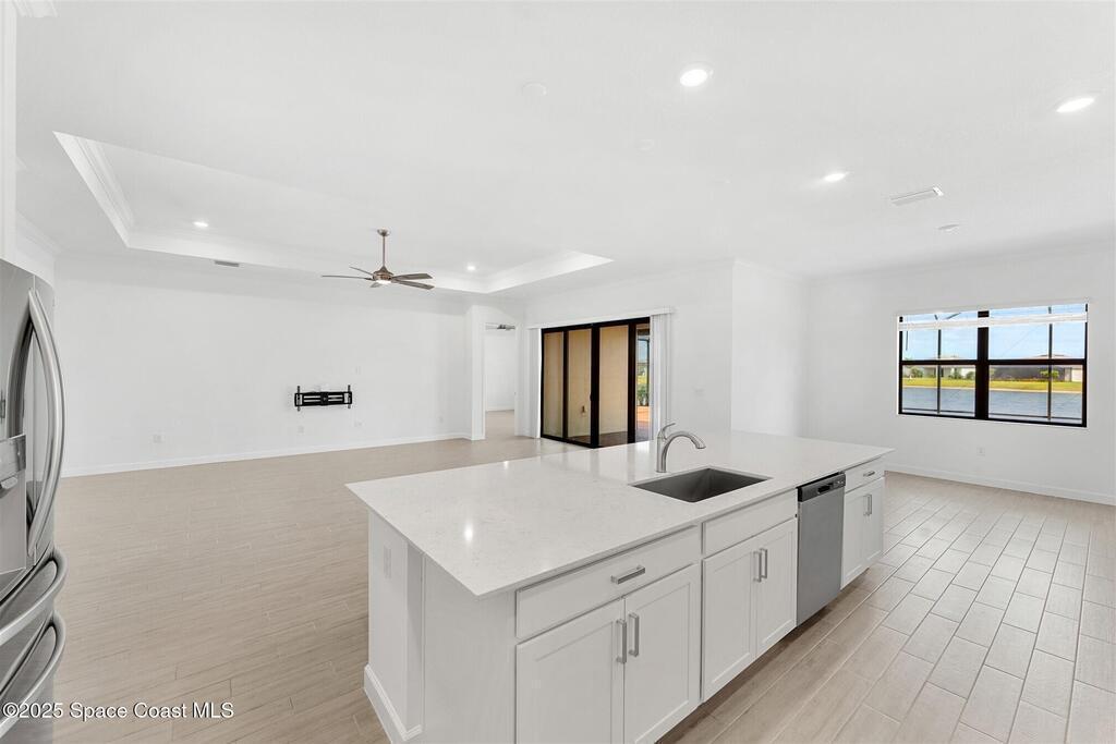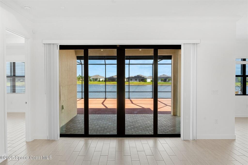 Rare opportunity to rent this beautiful waterfront 3 bedroom plus den, 3 bath, 3 car garage home in Bridgewater, Viera's resort style 55+ gated community! This stunning 3 year old home is meticulously decorated in the popular palette of whites and grays and has every option: plank tile throughout, crown molding, tray ceilings, custom lighting with undercabinet and pendant lights, 8' doors, gourmet kitchen with wall ovens and cooktop and incredibly large island! Amazing expanded screened lanai! Nothing was overlooked, including Impact Windows and Sliders (no hurricane shutters to install!). HOA takes care of the lawn maintenance! Bridgewater's breathtaking private clubhouse has a heated pool and spa, fitness center, billiards room, lighted tennis and pickleball courts, and even a movie theater! Close to the ocean beaches, Space Center, cruise ports, Brevard Zoo, shopping and dining! Please note, Bridgewater is a 55+ community.