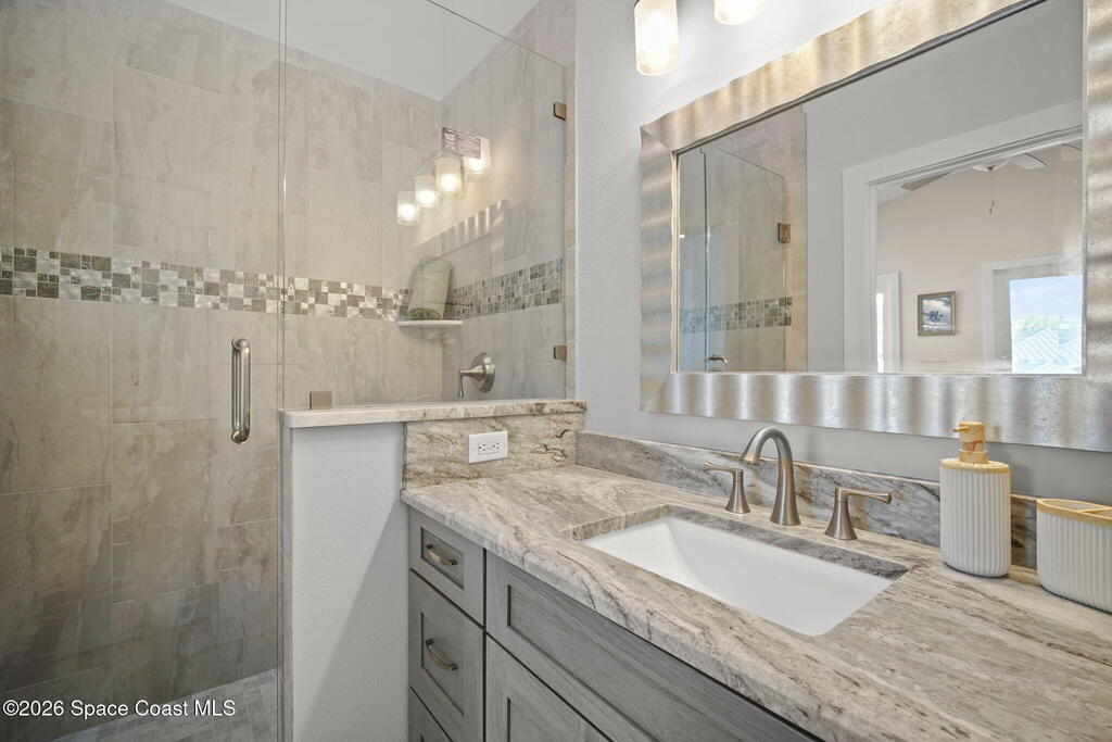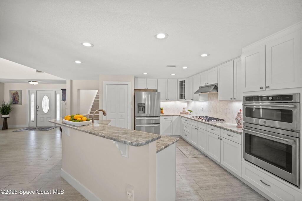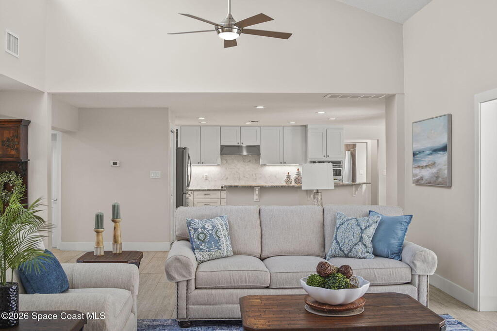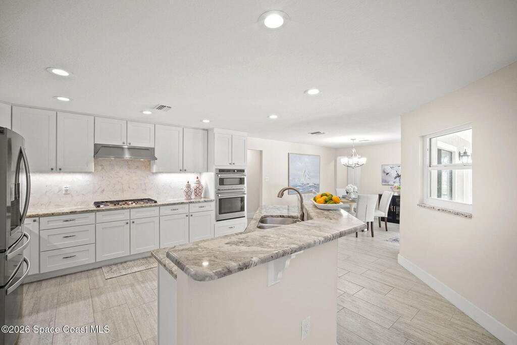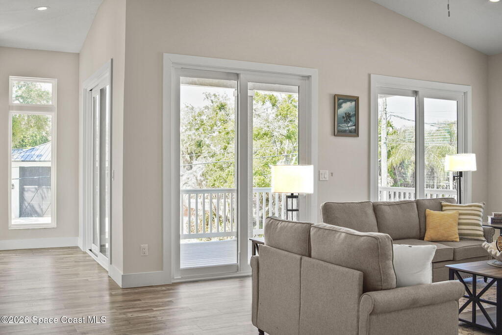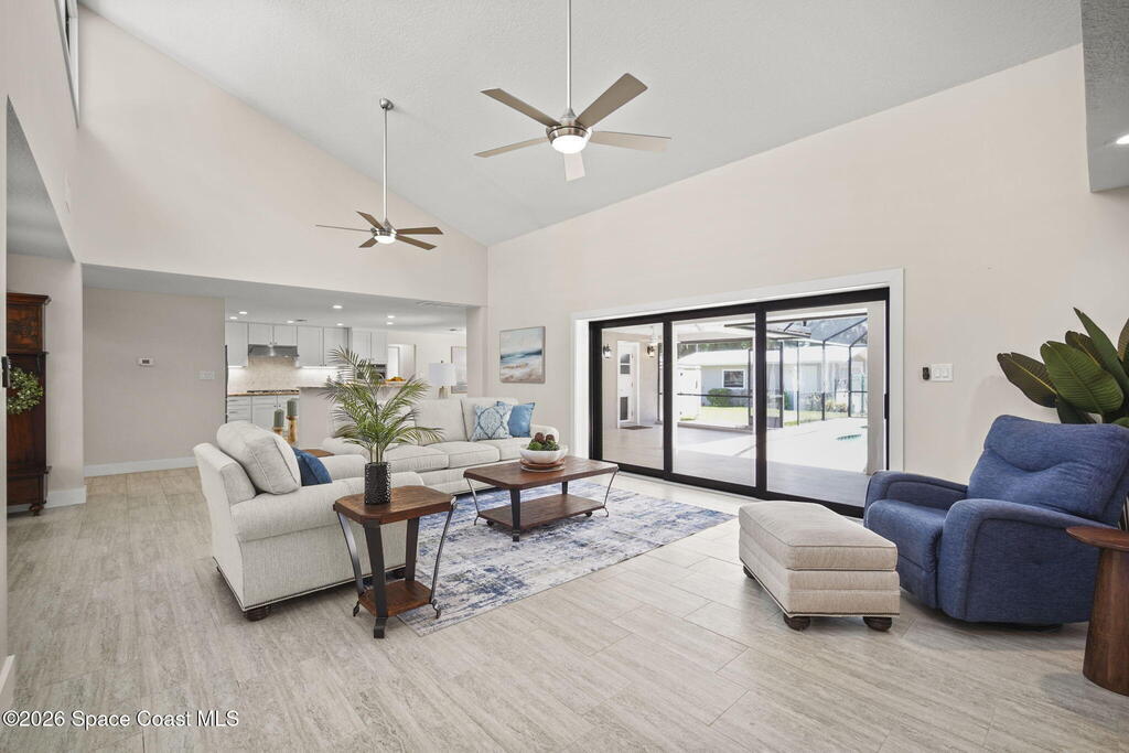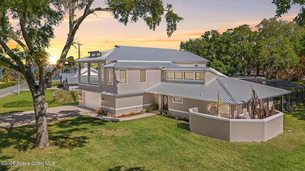 This completed renovated home flows beautifully with an open floorpan. It is an elevated concrete block construction home on two parcels totaling just under one acre, offering optimal location just off Rockledge Drive and expansive views of the Indian River. This versatile property features dual master suites--one downstairs and one upstairs--along with laundry rooms on both levels for added convenience. Enjoy multiple living spaces including a large upstairs loft with kitchenette and two private decks. Outdoor amenities include a screened pool, oversized covered porch, outdoor shower, and a fenced pet area. Parking and storage are abundant with two attached garages plus two detached garage spaces. Additional highlights include a 2019 metal roof and updated AC systems (2019 & 2025). A rare opportunity combining space, functionality, and waterfront lifestyle--schedule your private showing before it's gone.