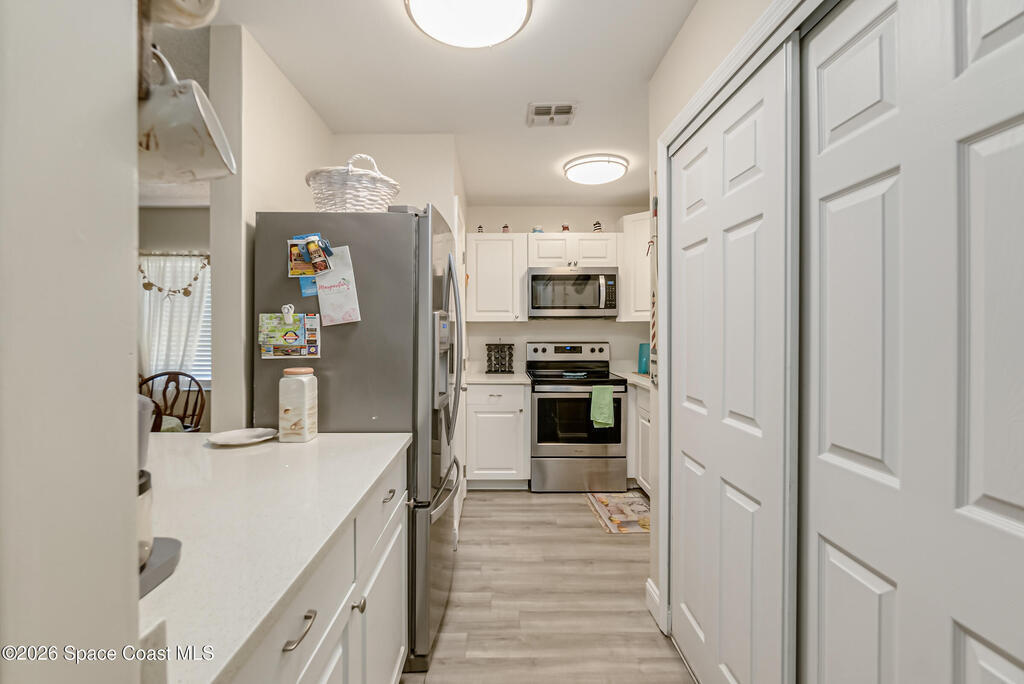 Make this Merritt Island condo your new home or vacation property. Beautifully remodeled 2BR 2BA condo with a screened porch overlooking a shady yard. Wood cabinets and quartz countertops in the kitchen with large pantry and laundry hook up. Vinyl floors throughout the majority of the unit for easy care. Community Pool, basketball courts, and playground. 10 minutes to the beach and 30 minutes to Orlando. Come and take a look today!