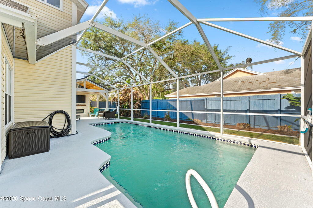 Stunning upgraded 3BR/3BA two-story pool home with 2-car garage on a premium corner lot. This beautifully maintained residence features a chef-inspired kitchen with brand-new KitchenAid appliances, natural gas (range & dryer), and a whole-house water softener with reverse osmosis system. Recent upgrades include a hurricane-rated garage door, new opener, updated electrical panel with transfer switch and new HVAC 2025. Step into your private outdoor retreat with a sparkling pool, custom-built TV entertainment area, partial turf, concrete curbing, and elegant landscape and soffit lighting. Additional highlights include two storage sheds on slabs, remodeled half and primary baths, a finished garage with custom workbench and cabinetry, plantation shutters, and a newer front-load Maytag washer. A rare blend of comfort, quality, and refined Florida living. Don't miss this opportunity to make it yours!!