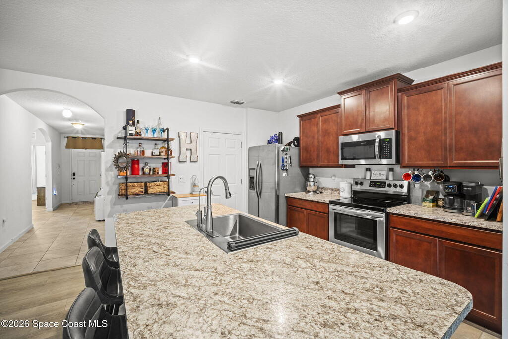 Welcome to this beautifully maintained Aria floorplan offering 3 bedrooms and 2 bathrooms, located in Forest Trace.Step inside to find LVP flooring flowing seamlessly throughout the home, creating a modern living space. The kitchen is a standout feature, complete with stainless steel appliances, an oversized farmhouse sink, and plenty of room for cooking and entertaining.Enjoy enhanced water quality with a Kinetico water softener system, including reverse osmosis for cleaner, better-tasting water throughout the home.Out back, you'll find a fully fenced yard with durable vinyl fencing, along with an extended paver patio, perfect for outdoor living. Two pergolas provide added charm and flexibility, as they can be easily moved or repositioned to suit your needs.Ideally located near Kennedy Space Center, Blue Origin, and SpaceX, this home offers a truly unique perk--regular rocket launch views right from your own driveway!Don't miss your opportunity to own this move-in ready home!