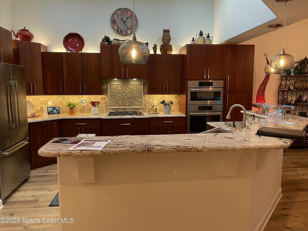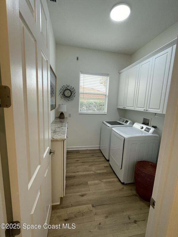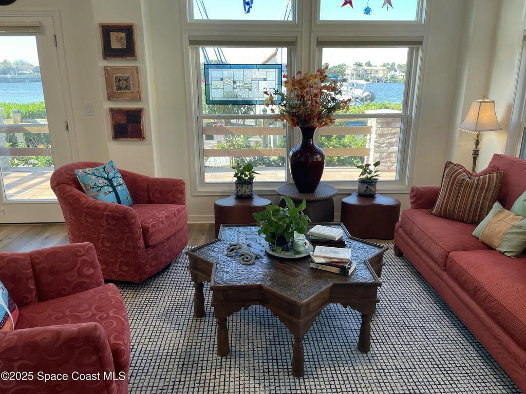 You just found your new Executive Style, Direct Riverfront, Barrier Island half Duplex in the highly sought after Gated community of Marina Isles!!! This Stunning 2 bedroom, 2 bath, 2 car garage, single story, half duplex, End Unit has been completely updated! As you enter the home you will be awestruck by the soaring high ceilings and impeccable craftmanship in everything from the Gourmet Chef's Kitchen with Wolf Gas Stove, and Bosch appliances, Granite Counter tops, solid wood cabinets, Faux painting, Imported tile and sooo much more. Approximately 3, 000 Square Feet all on one level. Formal Living and Dining rooms plus a very large Florida/Family room with Direct Banana River views! Nice size laundry Room with cabinets and hanging space. Hurricane Shutters for storm protection on all windows and doors. Your Private Paver Patio overlooks our wonderful Banana River and Marina. Enjoy Florida Beachside Living!!!