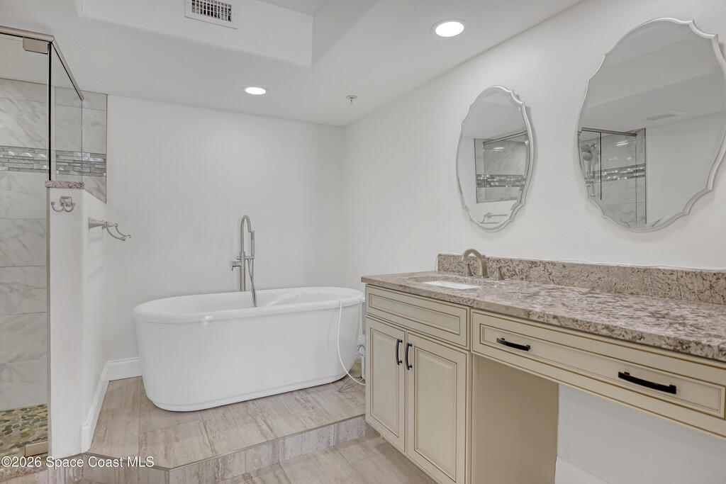 5th floor direct oceanfront! Guaranteed to be the nicest unit you'll see! Was just completely remodeled from top to bottom with the highest possible upgrades. The 2 center walls have been removed from the kitchen giving this unit a wide open expansive feel. The only one in the building like this. Top of the line island kitchen w/new quality appliances, custom cabinetry, glass tile backsplash, & exotic level 4 granite. High end porcelain tile floors throughout. Luxurious primary suite w/double closets(seller will install doors of buyers choice), open bathroom w/wall removed as well, free standing bath tub & separate shower. High quality tile work & granite as well. Plantation shutter window treatments. New AC. 45ft partially curved balcony to give you an end unit feel. Completed SIRS inspections w/no assessments. Heated oceanfront pool & clubhouse. Brick paver parking lot & driveways. Gardenia is one of the nicest buildings on the beach w/only 3 units per floor. You won't be disappointe