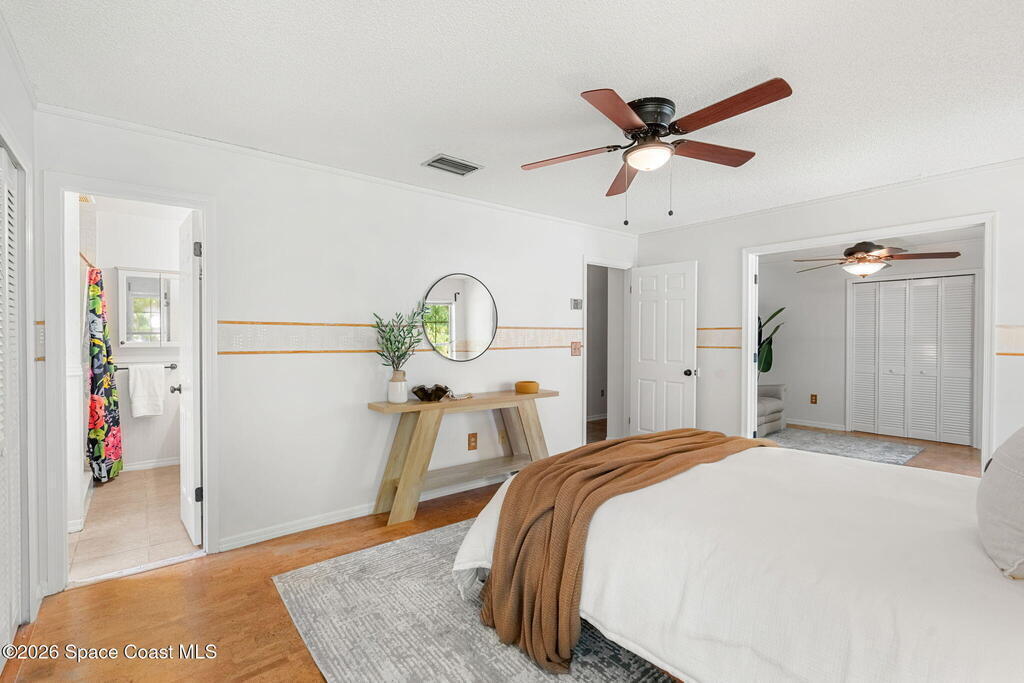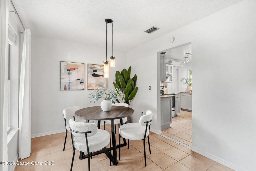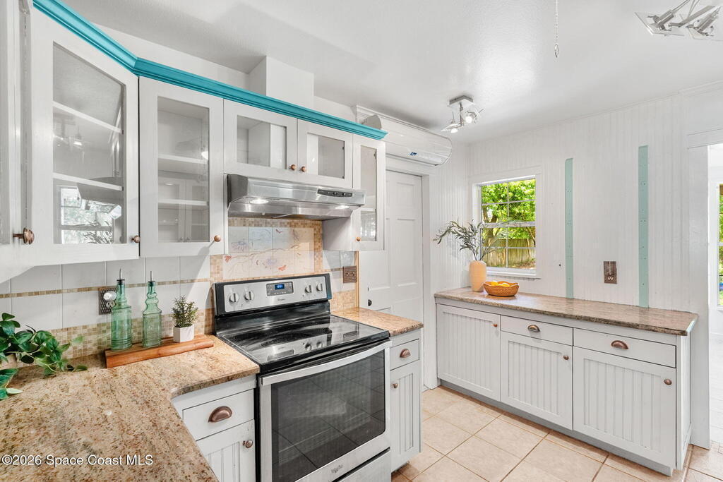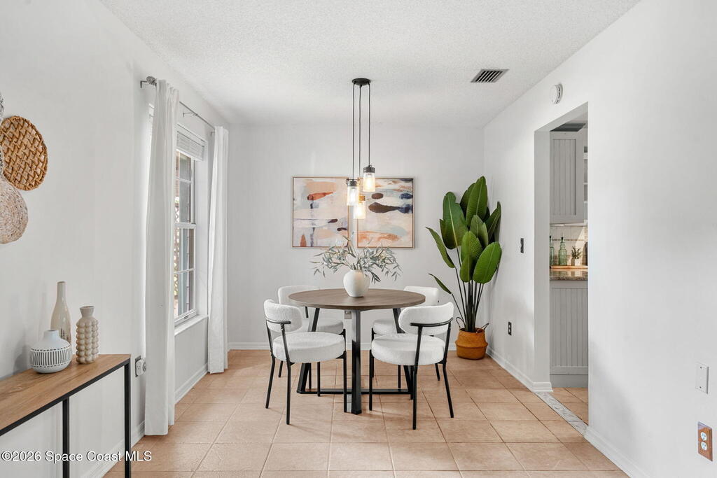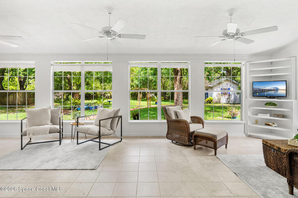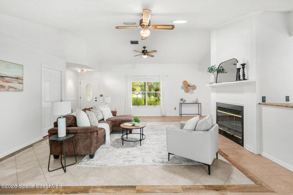 Charming 4 bed 2 bath custom built home with Southern style appeal on over a half acre lot! (NO HOA) Features include: living room with vaulted ceilings and wood burning fireplace, formal dining room, kitchen with stainless steel appliances, granite counters and two toned cabinets, and a light filled 12x30 sunroom with vaulted ceiling and wood laminate flooring. The spacious primary bath includes a Jacuzzi tub and solid surface integrated sinks. Outdoor features include a beautiful yard with mature trees, butterfly garden, walkway, sprinkler system and storage shed/workshop. Additional highlights include HardiePlank siding, storm shutters, 2 car garage, roof 2019, A/C 2019, water heater 2024 and dishwasher 2024. A rare opportunity to enjoy space, character and thoughtful updates in Cocoa.