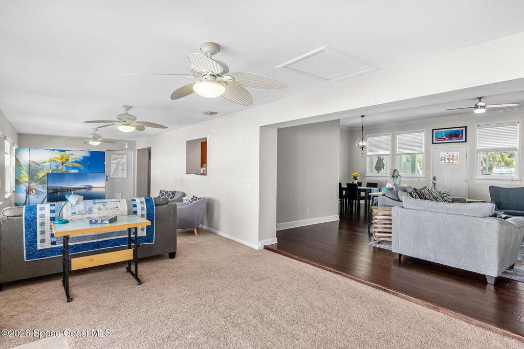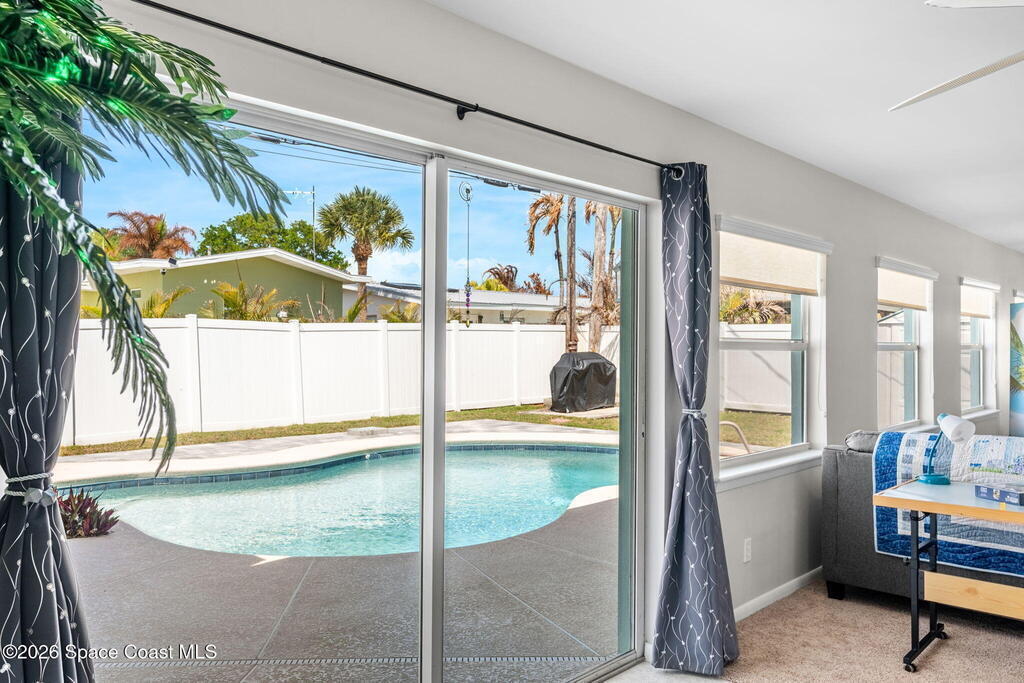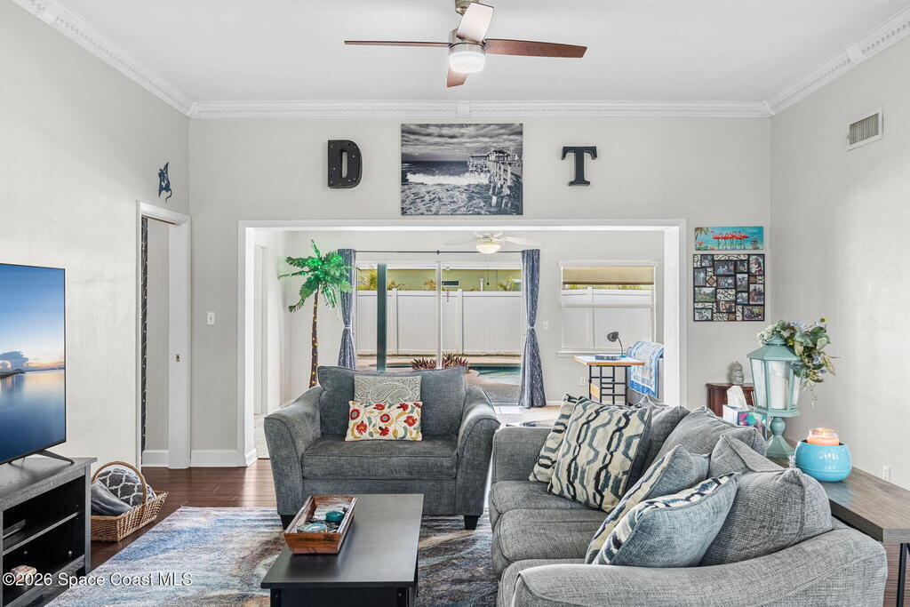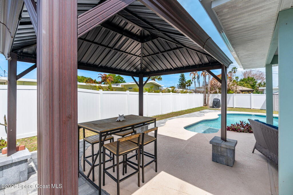 Welcome to 210 Atlantic Blvd, a well-maintained concrete block 3-bedroom, 2-bath pool home located in the desirable beachside community of Indian Harbour Beach, just steps from the sun-kissed shores near Gleason Beach. This home features an open floor plan, 10-foot ceilings, inside laundry, and a 2-car garage with a utility sink.Hardwood floors run through the main living areas, kitchen, and primary suite.Recent updates include a new roof with solar vents (2025), new AC system and ductwork (2024), upgraded electrical panels to 200 amps (2025), new gutters (2025), and the home was painted in 2023. The kitchen features quartz countertops and stainless steel appliances and opens to the main living areas.A large bonus room provides flexible space that can be used as a game room, home office, or additional living area.The backyard offers a chlorine pool with upgraded pavers, vinyl fencing, a gazebo, and newer landscaping! Perfect for relaxing and entertaining.