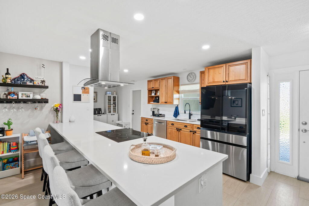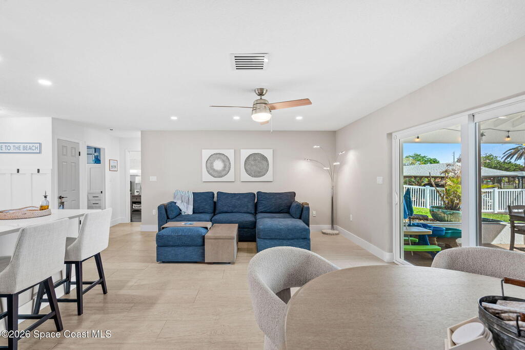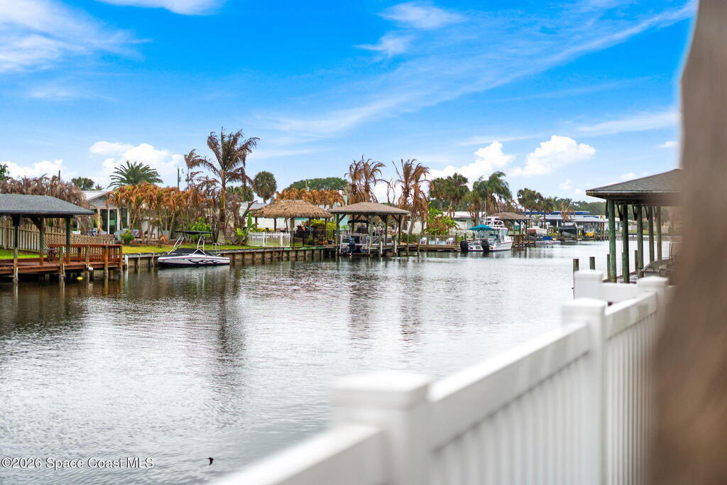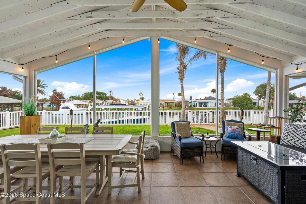 Recently renovated and perfectly positioned, this canal-front retreat offers the ideal blend of coastal lifestyle and convenience--just blocks from the beach and within walking distance of downtown Cocoa Beach, restaurants, and local amenities, and close to nearby schools.This solid concrete block home features a desirable split floor plan with 3 bedrooms and 2 bathrooms. Boating enthusiasts will appreciate the private dock and 16, 000 lb boat lift with direct canal access.Inside, the open layout is enhanced by new wood-look porcelain tile and new baseboards throughout the main living areas, with vinyl plank flooring in the bedrooms. The kitchen has been updated with new countertops and newer appliances, and the guest bathroom has been tastefully remodeled.Enjoy a spacious screened-in porch overlooking tranquil canal views--perfect for relaxing or entertaining.
