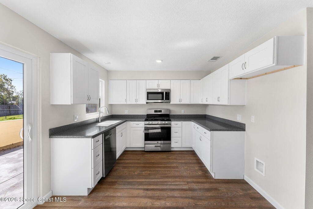 Life in Rockledge sets the tone here--morning walks along scenic trails, afternoons at nearby parks and golf courses, and effortless access to shopping, dining, and top-rated amenities that make this one of Brevard's most sought-after locations. This updated 4-bedroom, 2-bath home offers 1, 443 square feet with a fresh, modern feel, featuring new LVP flooring throughout, fresh interior paint, and a fully updated kitchen with stainless steel appliances. New double-pane windows enhance comfort and efficiency, while a dedicated laundry room with washer and dryer adds everyday convenience. Step outside to a fully fenced backyard, ready for pets, play, or weekend gatherings. Tucked within Davis Court with no HOA, this property delivers the rare combination of freedom, updates, and a location that puts you right in the center of everything Rockledge has to offer.