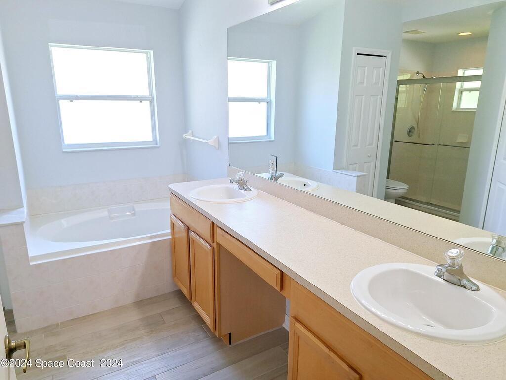 Available June 1st for move in. Beautiful Hammock Lakes Home in West Melbourne backing to quiet nature preserve. This home features an open floor with 3 bedrooms & 2 baths with modern stainless-steel appliances. Enjoy peace & quiet on the screened back porch looking out at lush greenery. Fenced in backyard. Double sinks in Primary bathroom with large walk-in closet, soaker tub, walk-in shower, spacious rooms with vaulted ceilings, fans, open formal dining, upgraded Maple kitchen Cabinetry with eat-in breakfast area, tile in wet areas & entry. Quiet neighborhood near every convenience imaginable. You'll love living here. Small dog considered, no cats.Call Nelson Azevedo for Appointment: 413-323-9730