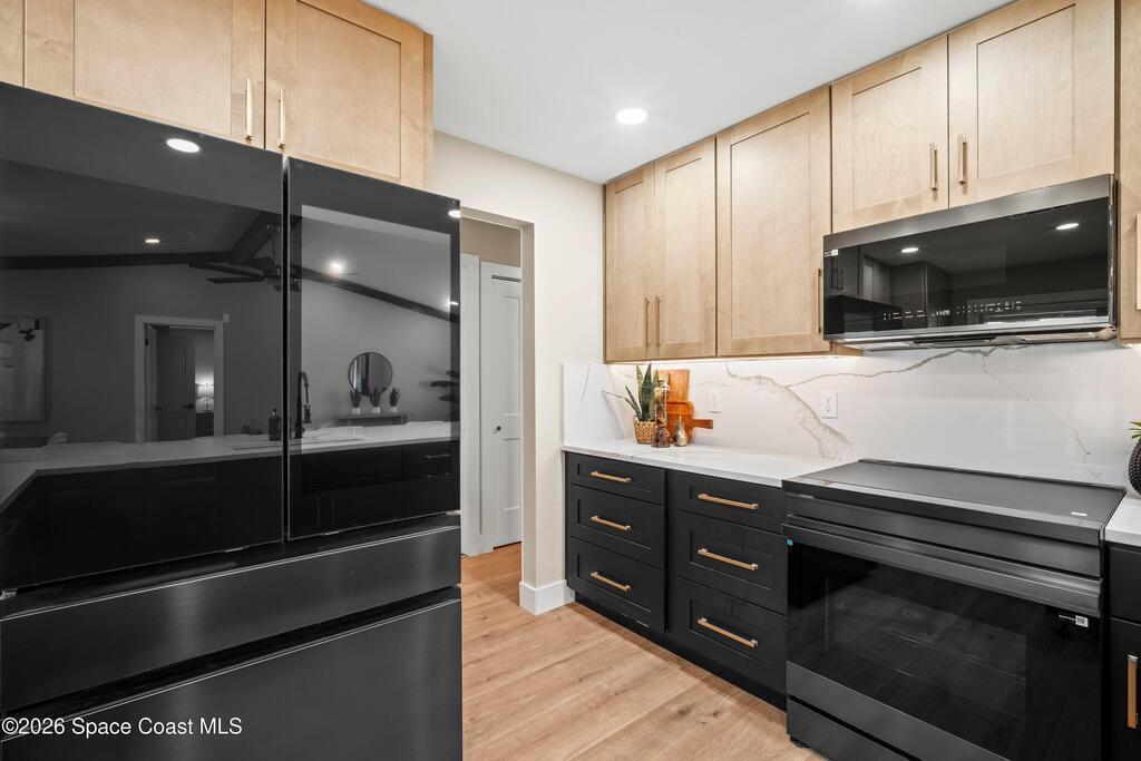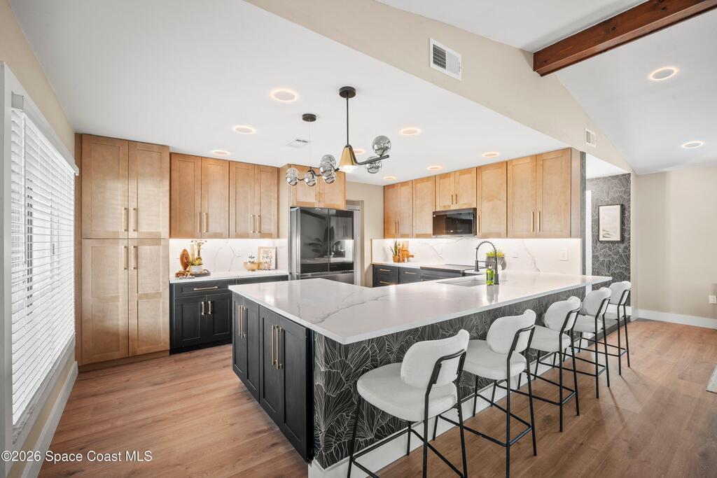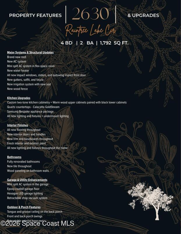 I can't even properly create a narrative for this listing... You just have to come see it. Combine true luxury with island living, and this is the home everyone's going to want. Absolutely no expense was spared in this renovation. From the custom two-tone kitchen with Calacatta Goldstream quartz to the luxury laminate flooring throughout, this one truly feels like home. Everything, and I mean everything, has been done in this home. I hate to just list it off, but you need to know. New roof, new AC, new impact windows, sliders, and front door. Fully renovated bathrooms. The kitchen features Black Samsung Bespoke appliances. The garage has its own mini-split, epoxy flooring, and hexagon LED lighting, and the add-on room that's perfect for a bedroom, office, man cave, or whatever you need, has its own mini-split. Outside, you'll find new sod, new irrigation system, new wood fence, and a back porch finished in tongue-and-groove ceilings to really give it the chef's kiss. Oh... and no HOA!