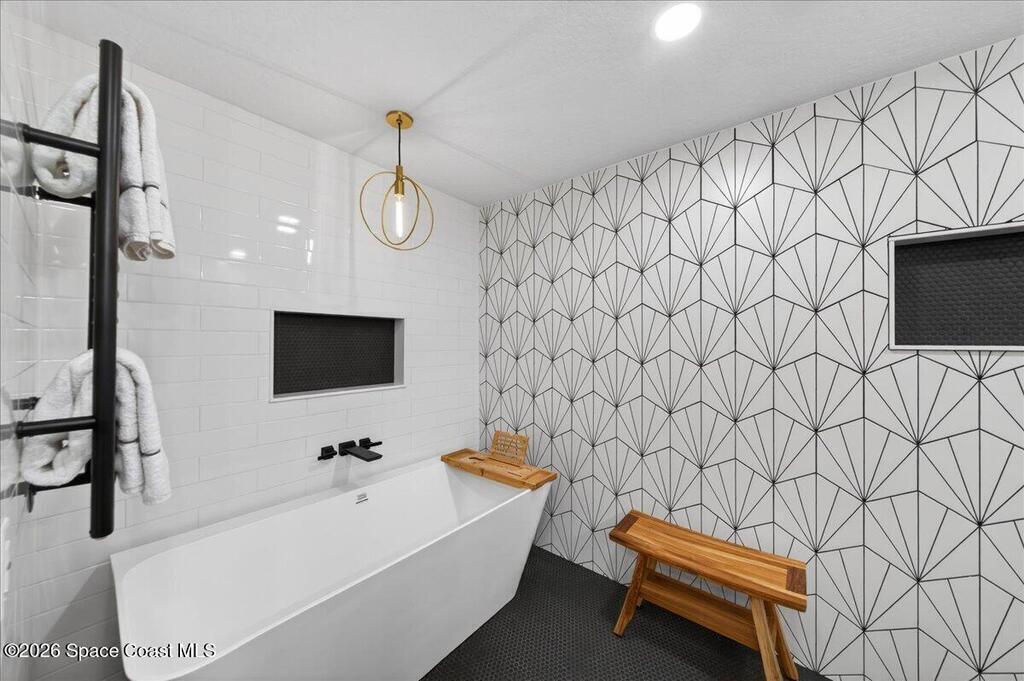RARE FULLY UPDATED SATELLITE BEACH HOME ONLY ONE BLOCK FROM THE ATLANTIC OCEAN. This remodeled 4-bedroom, 3 full bath beach home offers the perfect blend of style, comfort, and location, just one block from the ocean and right next to A-rated Satellite Beach schools. The primary suite is a true retreat, complete with a walk-in closet and a spa-like bathroom that feels like your own private getaway. Gourmet kitchen is made for entertaining and family celebrations. Private oasis awaits with hot tub and outside dining area in your beautiful backyard. Other features include 2022 double pane windows with impact front door, 2022 re-pipe water system & whole house water filtration system, 2021 4-ton A/C system, 2017 Metal Roof, 2024 fencing, updated electrical and SMART Electric Vehicle Charging Station. Don't miss this rare opportunity to own a beautifully updated home in one of Florida's most sought-after beachside communities!