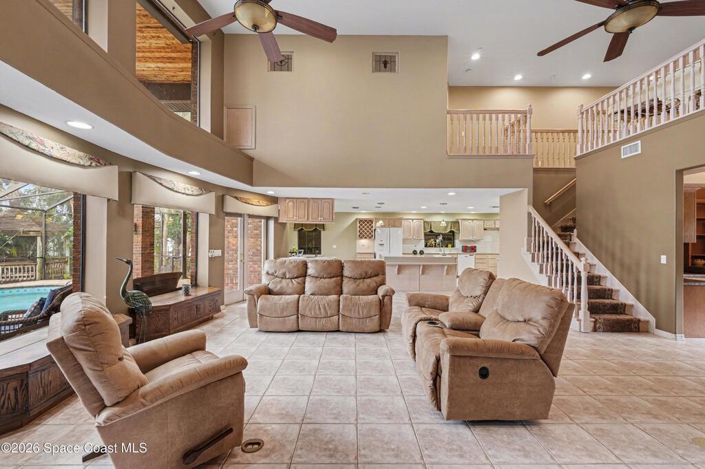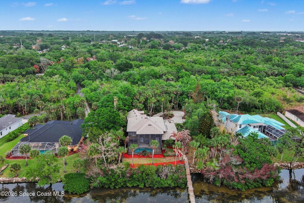 This stunning riverfront estate sits on 3 private acres and offers the ultimate Florida lifestyle. Enjoy direct river access with your own 470 foot dock and boat lift--perfect for boating, fishing, dolphin watching and relaxing waterfront views. The home features 5 bedrooms and 5 bathrooms, a spacious living area with a gas fireplace, and a huge kitchen with abundant cabinetry and a walk-in pantry. Additional spaces include a dedicated office and a versatile loft.Upstairs, a full private apartment with its own entrance is ideal for guests or rental income. Step outside to your personal oasis with a sparkling pool and screened-in lanai, perfect for year-round enjoyment. A 2-car garage adds convenience. This rare property combines space, comfort, and waterfront living--schedule your showing today!