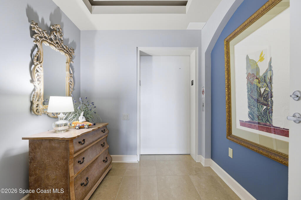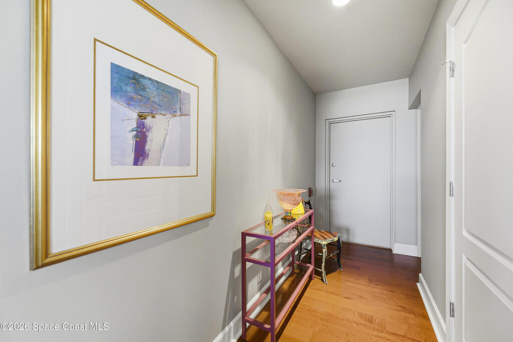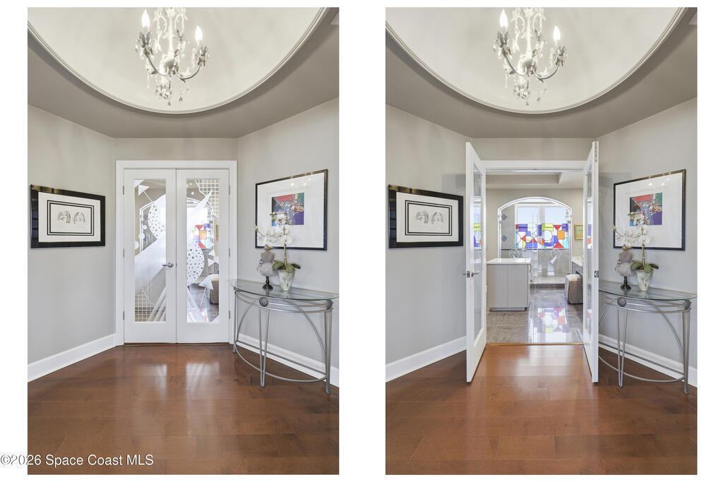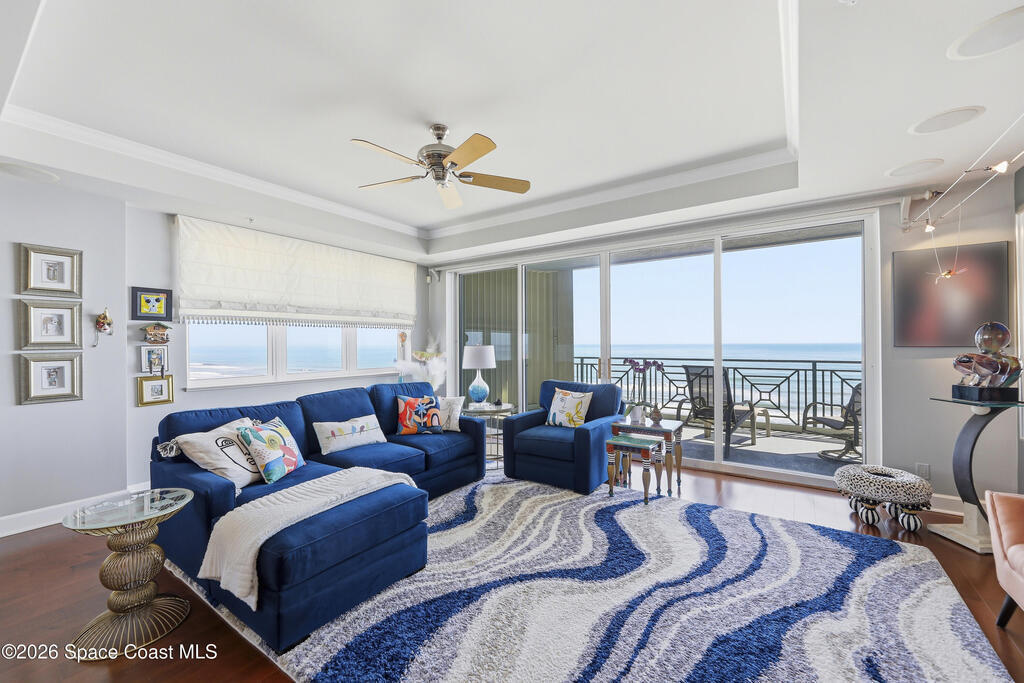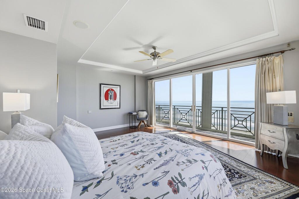 The Pinnacle of Riomar: Full-Floor Oceanfront PenthouseExperience unmatched privacy with a secure elevator directly accessing your private foyer. This full-floor, 3, 009 sq ft residence offers 360 views--from Atlantic sunrises to Banana River sunsets--making it a rare, fully customized top-floor opportunity.This 3-bedroom, 3.5-bath home features 10-foot ceilings, hardwood floors, and expansive living areas with a wine bar and two wine coolers. The chef's kitchen includes: two Sub-Zero refrigerators, Thermador double ovens, Samsung cooktop, and Fisher & Paykel double drawer dishwasher.The floor plan is designed for flow and privacy: open kitchen and dining area maximizes light and water views and has powder room. Each bedroom has an view, en-suite bath, plus custom closets.Enjoy a private oceanfront balcony, motorized hurricane shutters, private garage + extra parking, and new HVAC/water systems. Boutique community with pool, security, and all-inclusive fees.